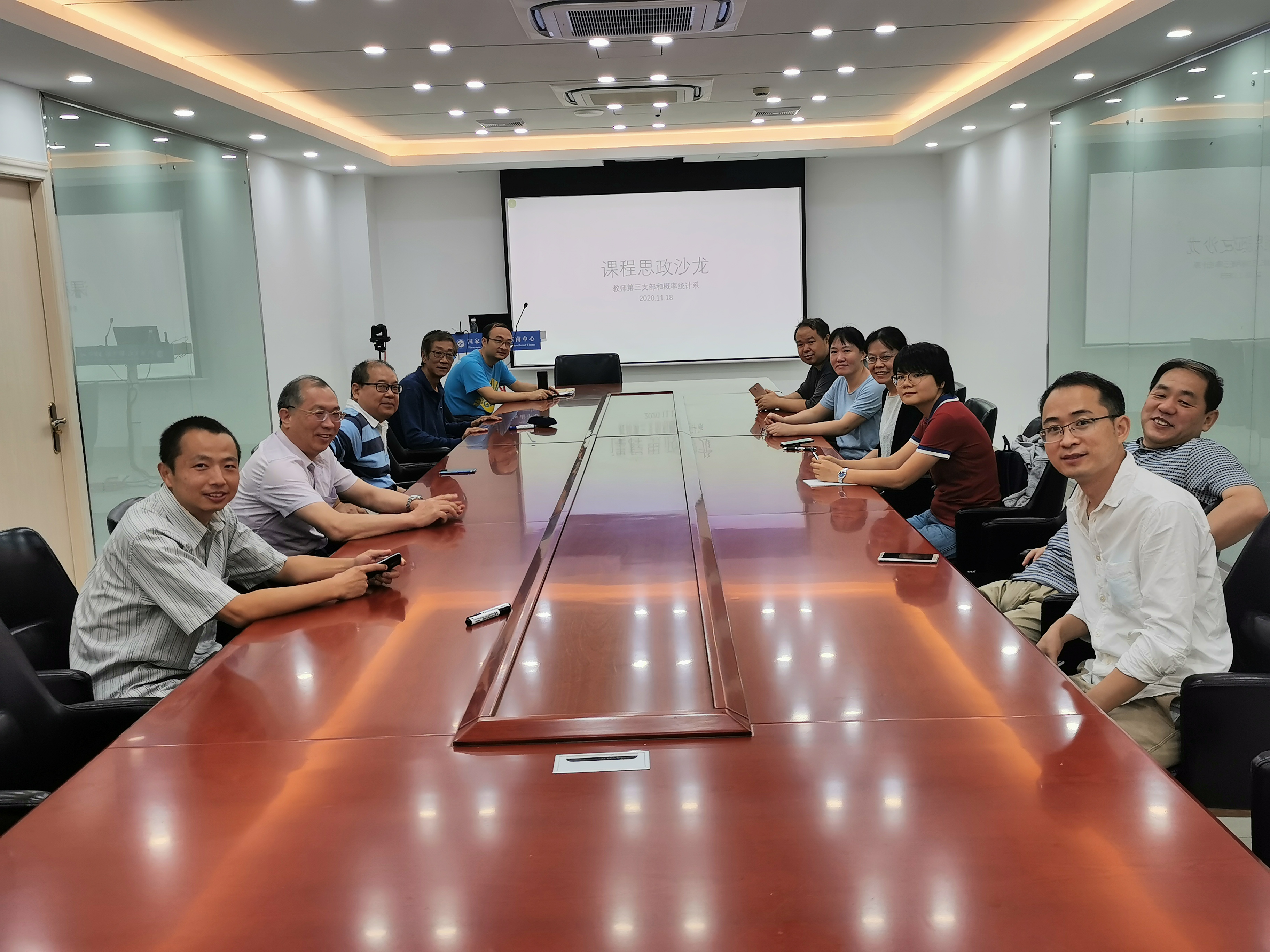 2020年11月18日下午4点半,9001cc金沙教师第三党支部联合概率统计系在天元数学东南中心会议室开展“思政课程沙龙”交流活动。教师第三党支部是以概率统计系的党员老师为主要班底,因此本次沙龙活动主要围绕概率统计方向的课程思政进行交流和讨论。沙龙活动由第三支部党支部书记、概率统计系副主任(主持工作)周达主持,学院党委副书记陈国强也出席了本次沙龙活动。