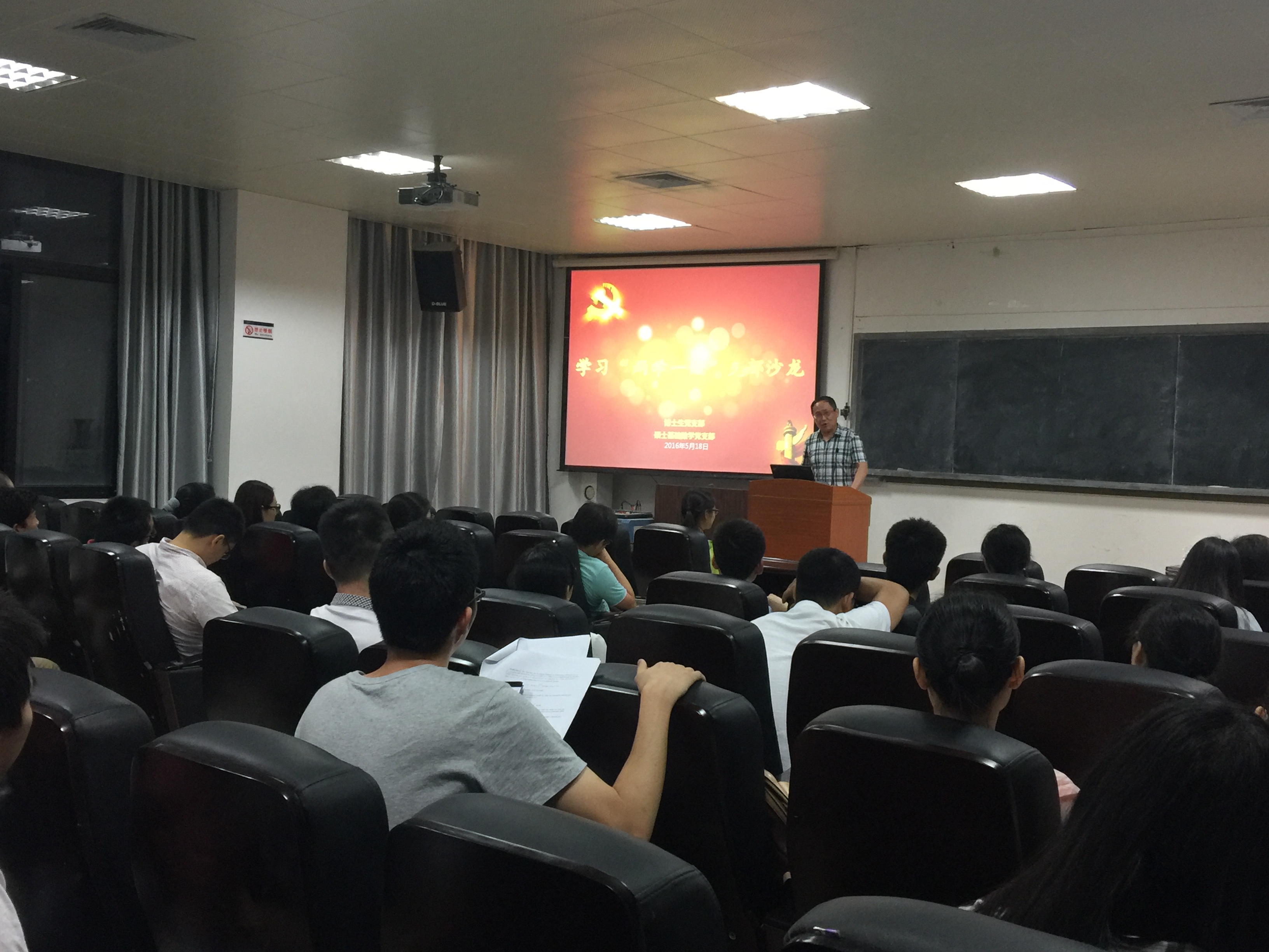 贾翠满同志首先向大家详细介绍了“两学一做”学习教育重大意义及本次专题讨论的具体内容。接下来,院长林亚南专题讲话,他强调,“两学一做”,基础在学,关键在做。我们党员要不断增强政治意识、大局意识、核心意识、看齐意识,坚持以学促做、知行合一,把学习教育同做好本职工作结合起来。林院长还带领党员学习了习近平总书记4月26日在安徽调研召开座谈会时发表的重要讲话,他特别要求大家铭记习近平总书记对知识分子的要求,并对在场的学生党员提出自己的期望,要求大家要严格要求自己,充分发挥自身优势,勇于担当、敢于创新、服务社会、报效人民,努力作出新的更突出的贡献。