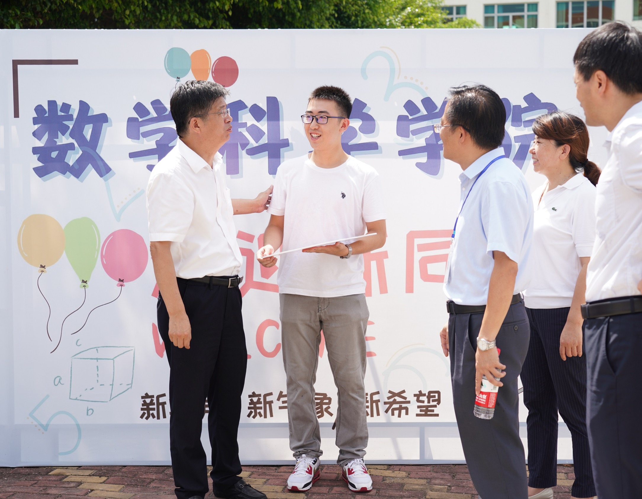 9月8日,校党委书记张彦,党委副书记徐进功带队检查学院迎新布置情况,仔细询问了学院的准备工作、新生资料袋、新生入学教育安排情况,认真翻阅了新生大礼包中以陈景润作为封面人物的迎新刊物《数学人》,对学院各项工作做好了充分准备表示肯定。