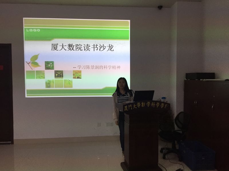 活动一开始,主持人就向同学们详细讲解了厦大的“四种精神”,即:陈嘉庚先生的爱国精神,罗扬才烈士的革命精神,抗战时期厦大内迁闽西艰苦办学的自强精神,和以王亚南校长、陈景润教授为代表的科学精神。然后以我院学长陈景润先生的科学精神为例,通过边播放视频边讲解的方式,让同学们了解和感悟到陈景润先生艰苦却有光辉的一生。通过对陈景润先生的事迹,让在场的小伙伴们都感受到了身为厦大人、身为数学人的骄傲与自豪。