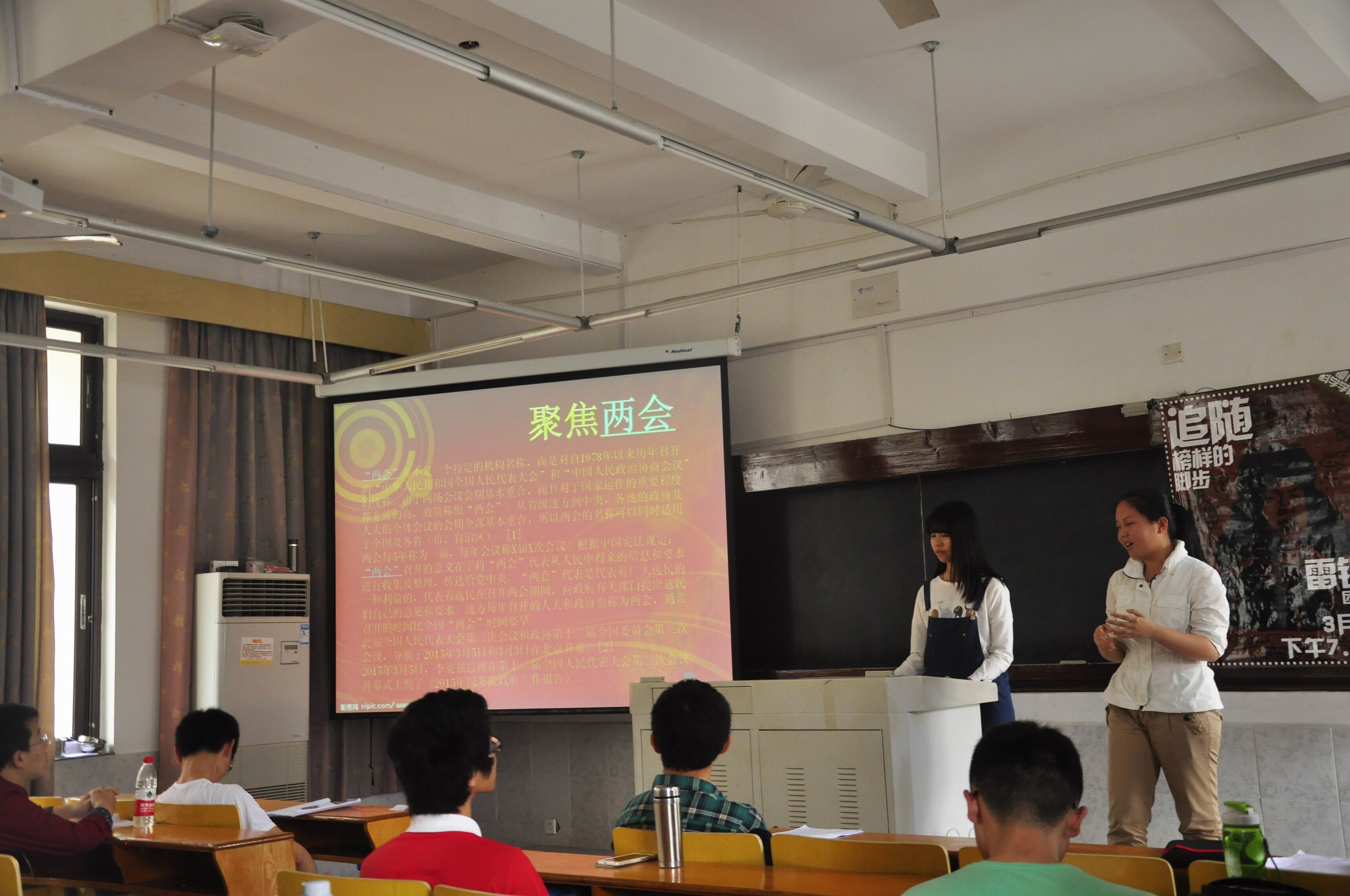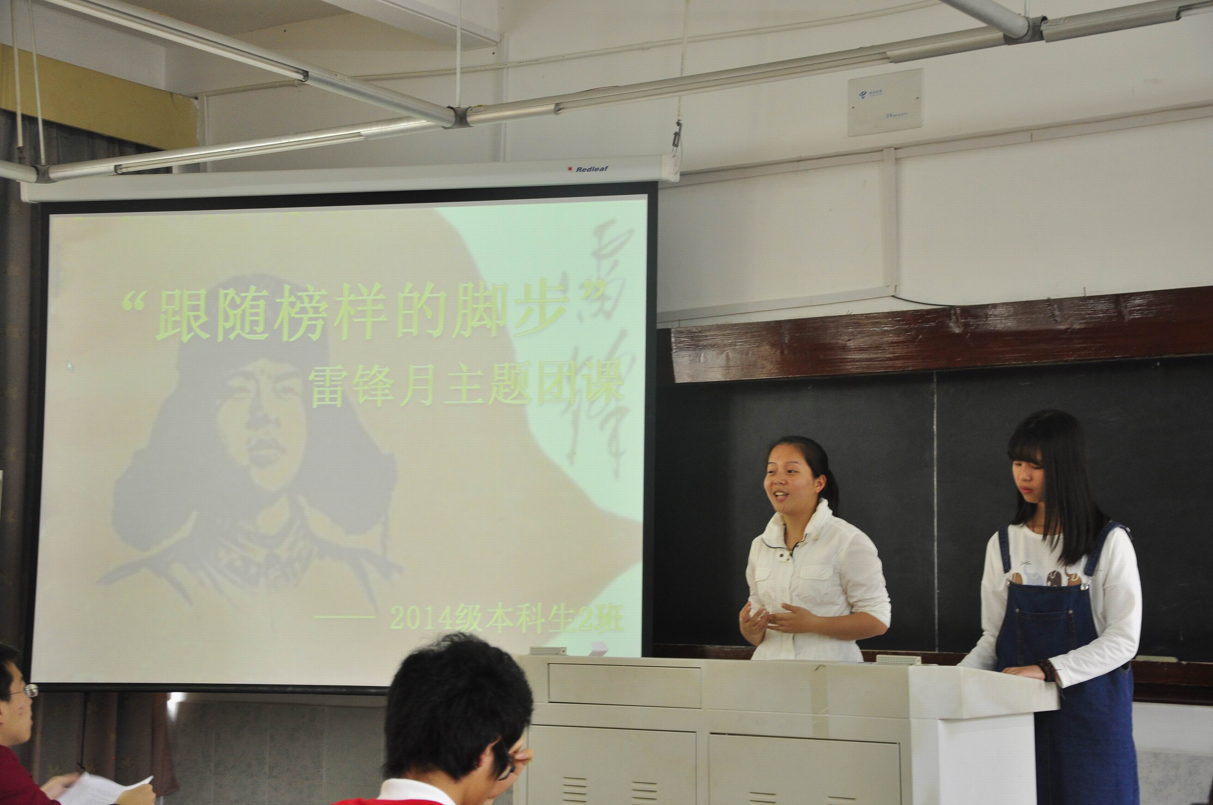 2015年3月31日,2014级本科生2班在南强教学楼305教室开展“跟随榜样的脚步”“四进四信”主题团日活动。