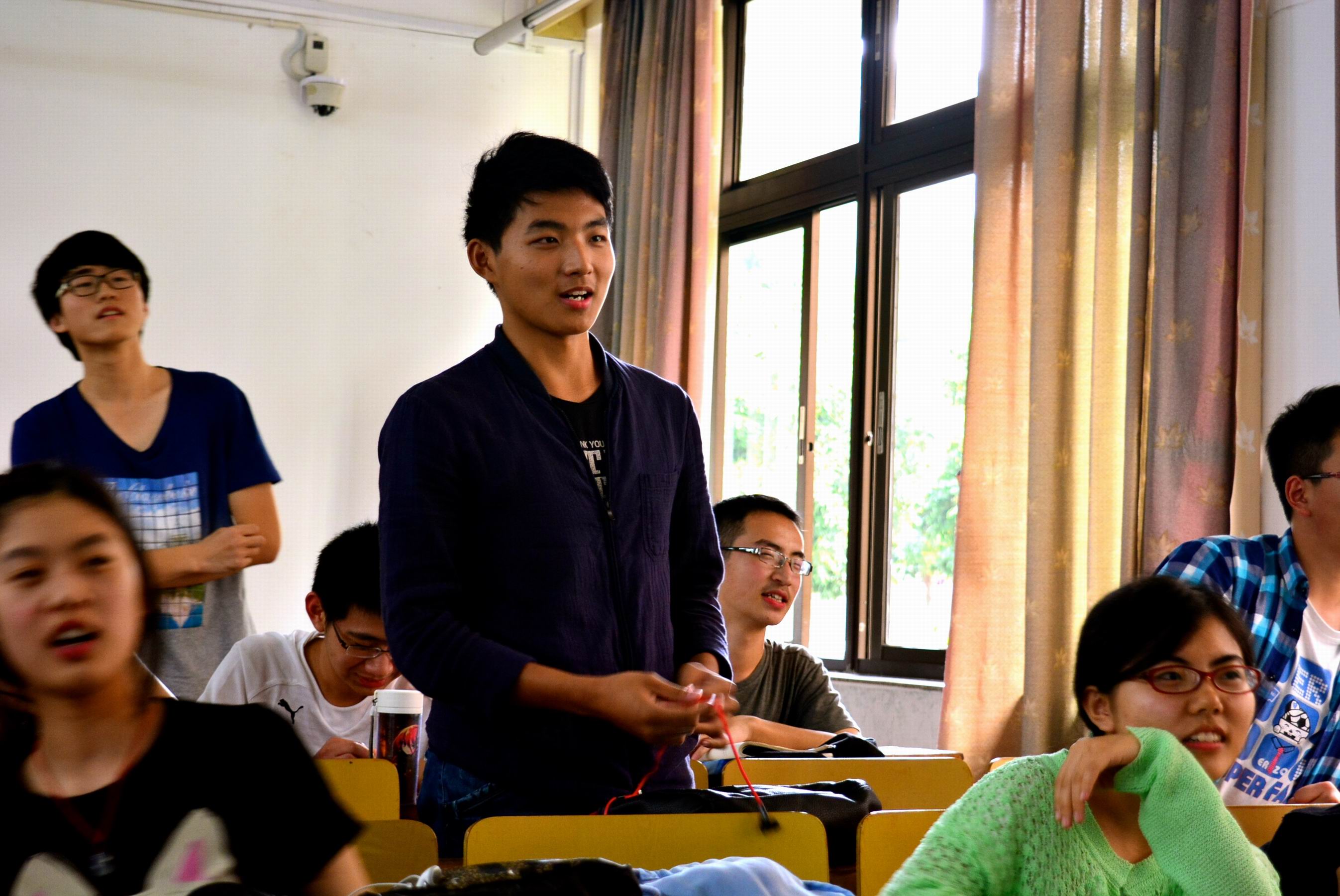团支书陈亚雯首先通过一张图介绍了“四进四信”的涵义。她说,为了把习近平的讲话精神传播的更广、更远、更深,引领和帮助广大同学了解、掌握、理解、运动讲话精神,团中央学校部开展了“四进四信”活动,推进讲话精神进支部、进社团、进网络、进团课,引导帮助广大青年学生树立对党的科学理论信仰、坚定走中国特色社会主义道路实现“中国梦”的信念、增强对党和政府的信任、增进对以习近平同志为核心的党中央的信赖。1班团支部响应团中央号召,开展主题团日活动,让习近平总书记系列重要讲话精神进支部、进团课。她以一张图读懂“四进四进”来解读当代大学生应该如何来做。她提倡同学们平时加强线上学习,关注“共青团中央”“团中央学校部”“学习小组”等微信平台,坚持线上阅读学习讲话精神,点评并分享到朋友圈。团课上,为调动同学们学习的积极性、主动性和参与性,现场准备了二十道题目进行有奖竞答活动。全班同学共分为六个组,小组内部成员集思广益,踊跃参加。同学们积极发言并谈了感想,通过竞答活动增强了同学们对讲话精神的理解,提升了思想认识水平。
