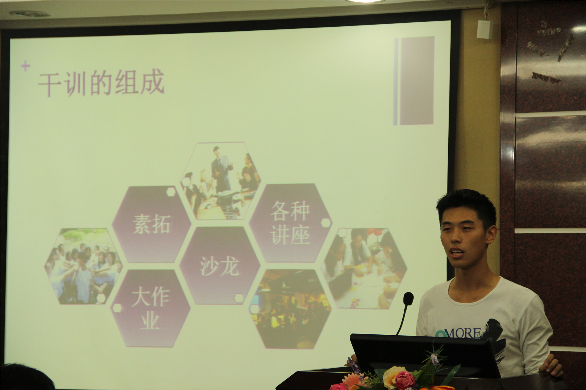 紧接着,来自软件学院林美娟同学向学员们介绍了外联部门的工作。如果说往年曾拉到过的丰厚的赞助费是鼓励大家继续发光发热的动力,那么在外联部幽默的工作氛围、互黑的学长学姐则使新干事们更加期待这份亲切。再加上特殊的部门管理形式和各种特色活动,林美娟同学的展示让学员们对接下来的交流活动和未来的学生工作充满期待。其实,不仅仅是软件学院,不仅仅是外联部,每一个学院、每一个部门,都在努力为它的小孩们建立一个个温暖的家。