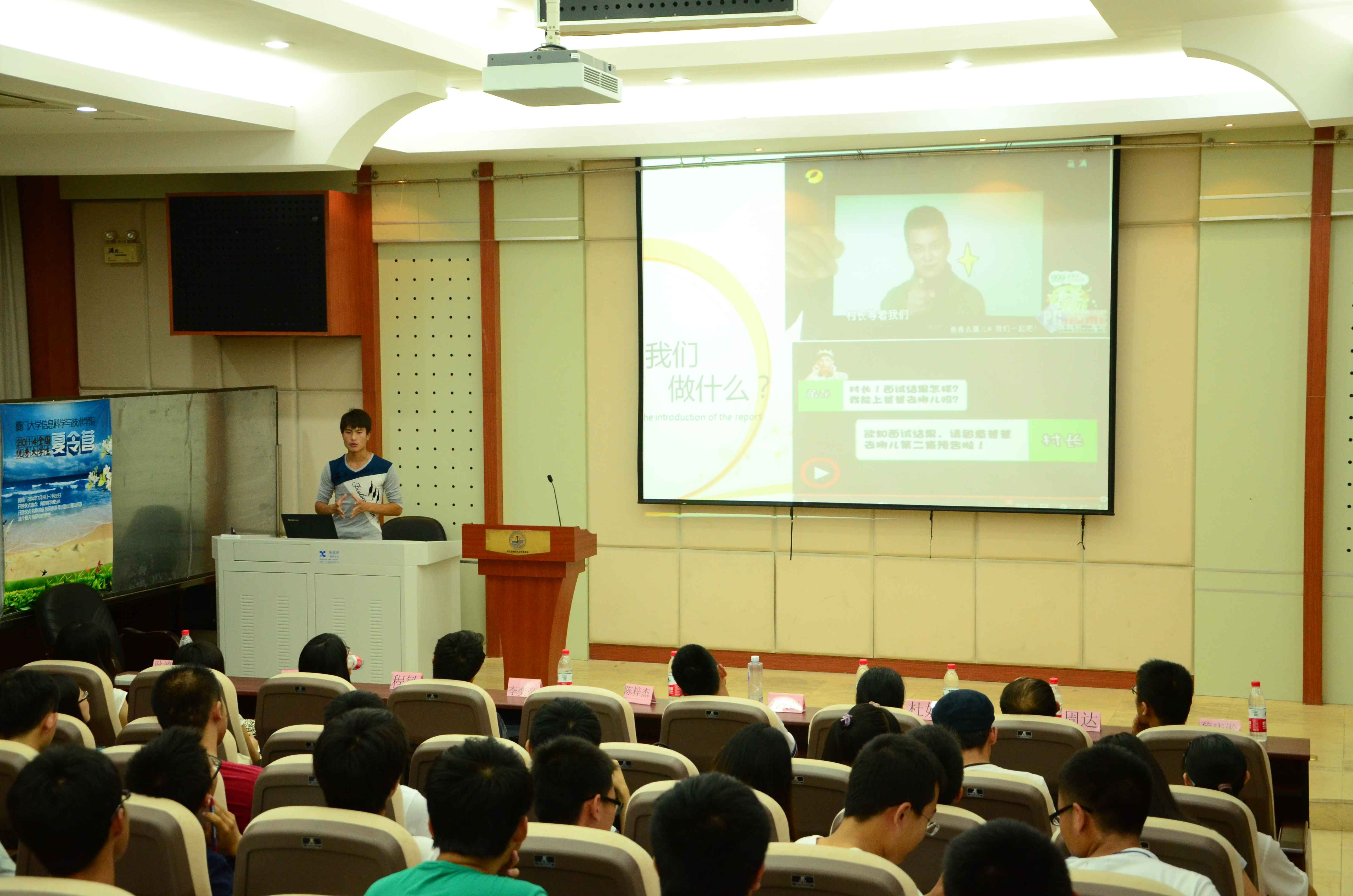 “两会一中心”各部门的学生干部代表用幽默风趣的语言向学弟学妹们介绍了各部门现状和主要职责。各个部门都各显神通进行“招亲”,意在吸纳更多优秀的新生们来加入各自部门温暖的大家庭中。