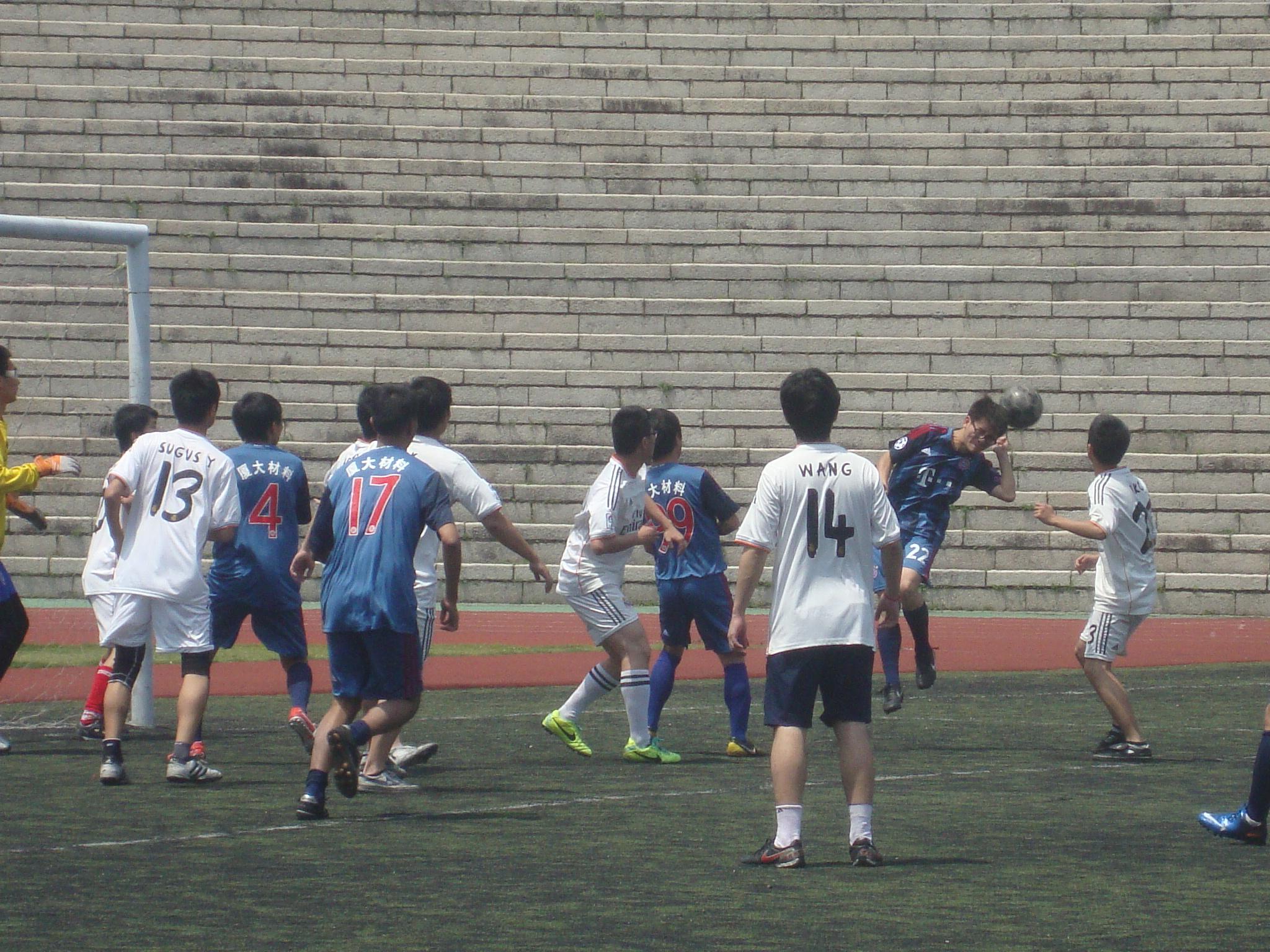 比赛开始不久,中卫洪昱旻在禁区前沿犯规,绊倒了对方,就在他跟对方球员道歉之时,对手快速发出了任意球,抓住洪昱旻身后空当,打了数院一个措施不及,对方前锋在禁区右侧接球,直接起脚射门,门将来不及做出反应,0:1,数院落后。