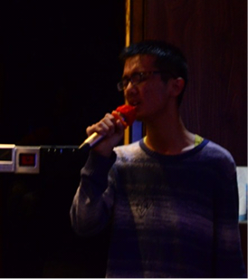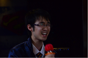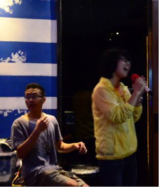 看!毕腾同学在投入的演唱《你不是真正的快乐》!这表情,真的是不太快乐啊!可惜我们的bb为了准备辩论赛嗓子不好发挥略显失常。