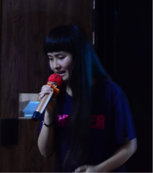 贺颖在3+2篮球的赛场大杀四方后拍马赶到,豪气万分地吼上一曲《Opera 2》学姐唱的有多好听你们知道么!海豚音可以如此完美的被演绎你们知道么!只见那一瞬间,桌子上的玻璃杯啪啪啪地全部碎掉了!你们看坐在旁边凳子那一瞬间的表情,那种震撼之余还有些心悸的感觉,那种全身毛孔张开,汗毛树立的刺激,用一个词来形容,那就是——爽!