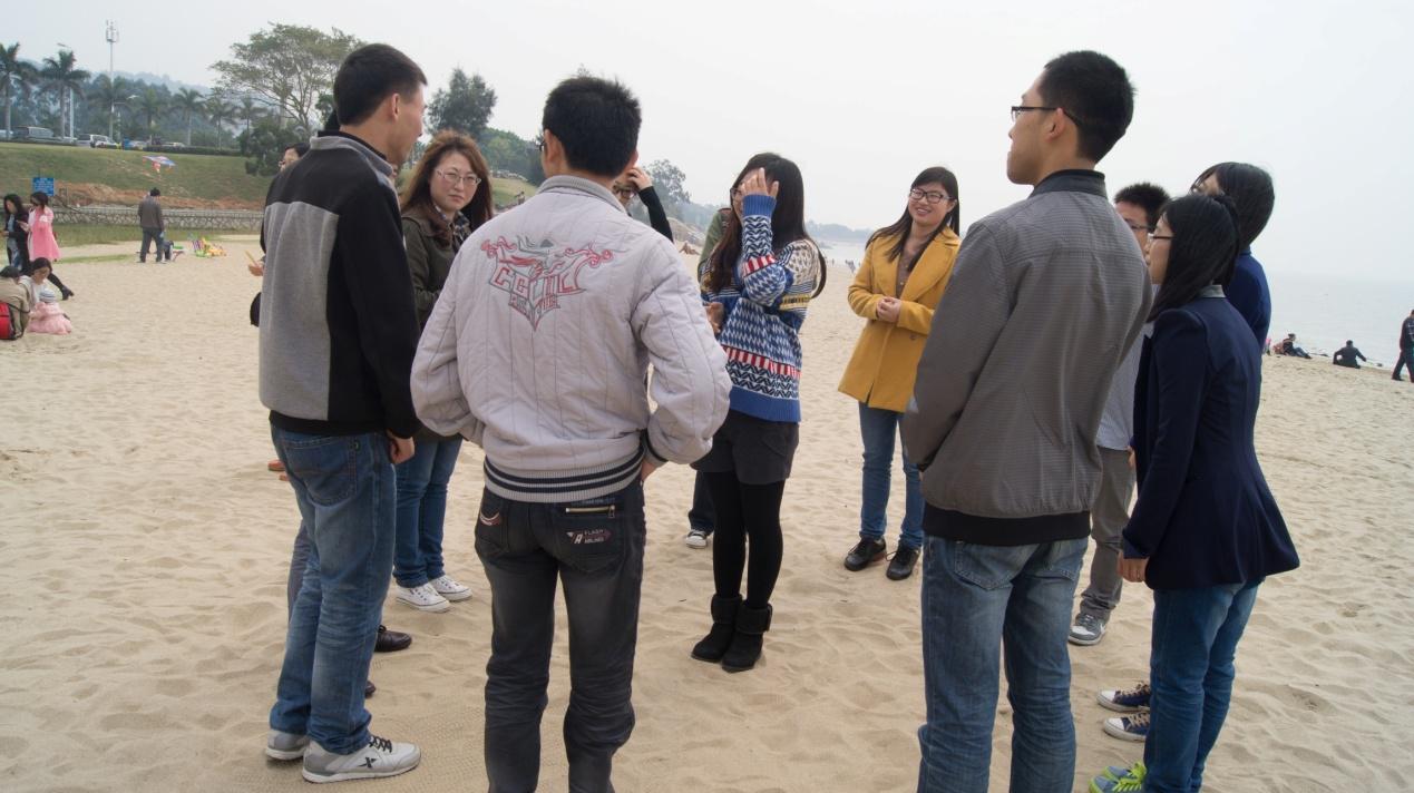 2 014年3月23日上午9:00,我院研究生会各年级成员在心理咨询中心两位素拓老师的指导下,于珍珠湾沙滩参加了心理素质拓展活动。