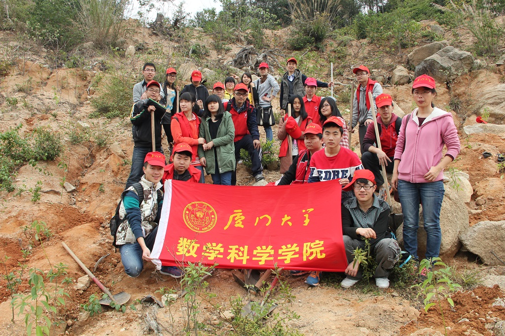 早上八点的三家村广场人头攒动,校车整齐列布。为响应3.12植树节志愿植树活动,由数院大一、大二本科生以及研究生组成的植树队伍在兼职辅导员张昆卿的带领下乘坐校车向着集美区坂头水库出发了。