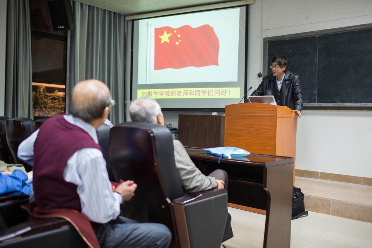 一段朴实真挚的开场白之后,余扬政教授首先和在座的数学学子谈了谈物理与数学的关系,例举了陈景润、陈省身、杨振宁等巨匠的生平与词赋展示了数学与物理的密切关系。他的平易近人的风格、轻松自然的谈吐很快就博得了同学的一致好感。
