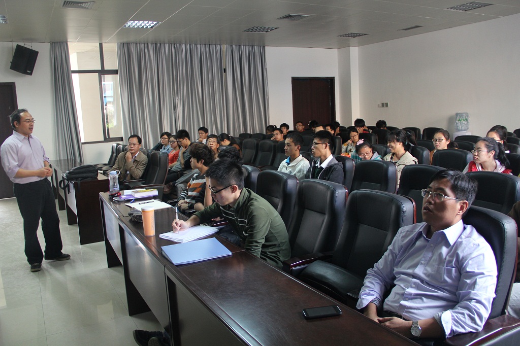 2013年12月8日上午10:00,我院“魅力数学”系列讲座之第十三讲——素数-爱与恨在海韵实验楼105举行。本次讲座的主讲人是来自华南师范大学的袁平之教授,主要研究方向为数论及应用。副院长钱建国教授,数学与应用数学系主任金贤安教授,祝辉林老师以及“拔尖人才计划”全体同学参加了本次讲座。