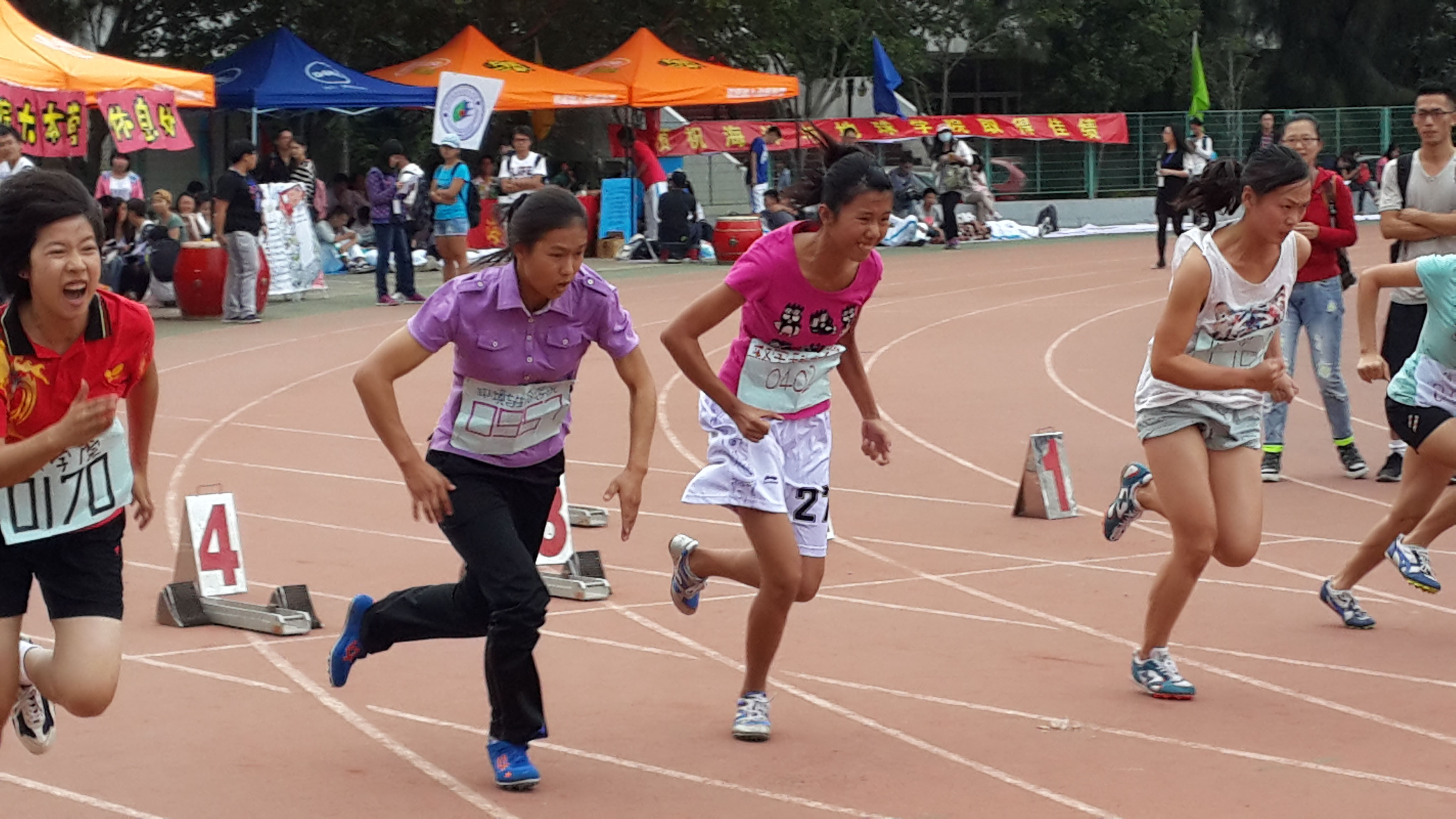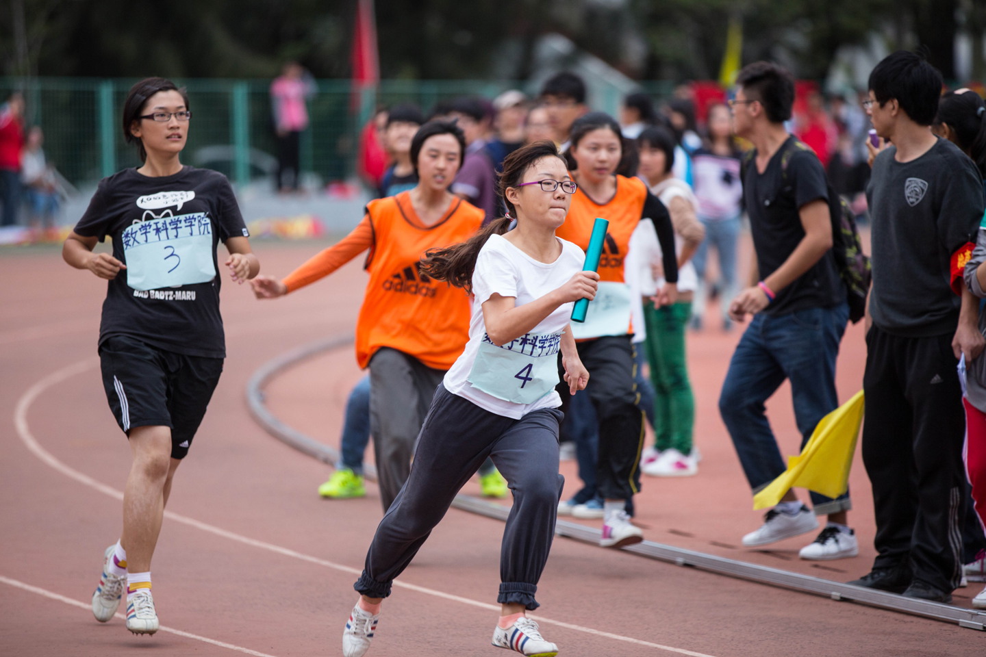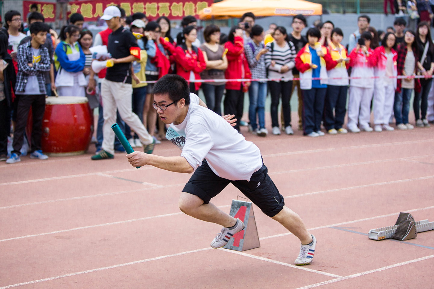 此外,我院在本科生男子、女子4×100米接力两项团体项目中分别取得14名、15名,虽然成绩不突出,但运动员们的喘息声、同学们的呐喊声、震天的鼓声将整个数院的拼搏精神、团结精神展露无遗。还有在男子110米栏、男子铅球、女子800米、女子跳高这些与对手成绩差距较大的项目中,我们的运动员们也赛出了水平,赛出了风采,将体育竞技精神发挥得淋漓尽致。