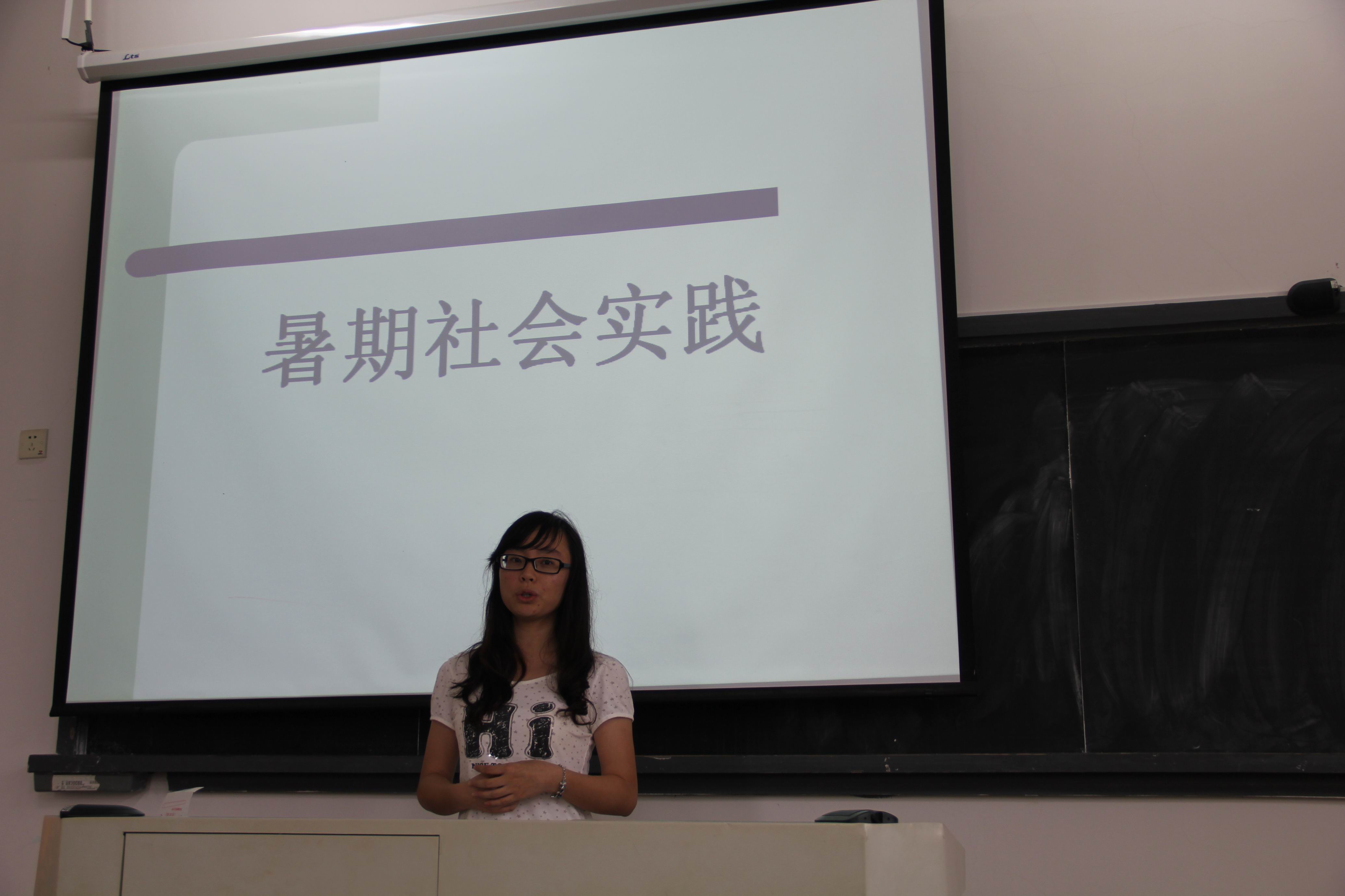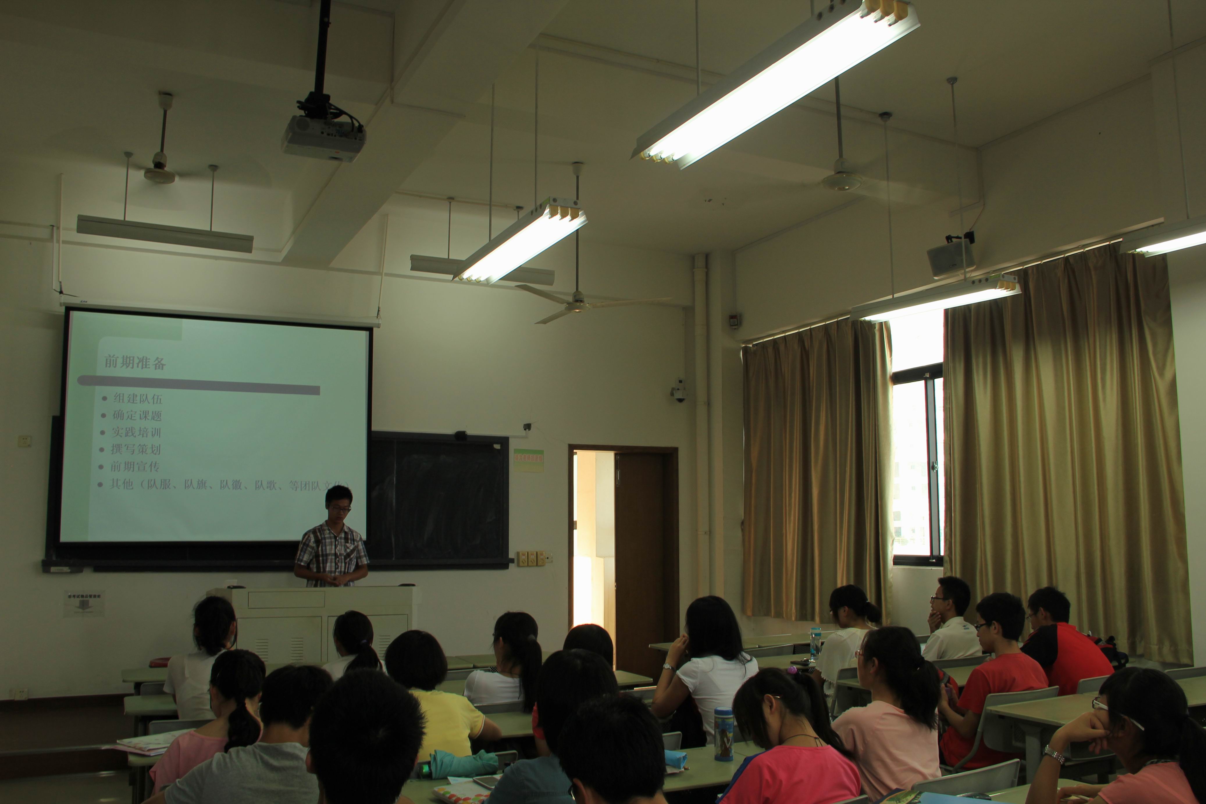 5月25日下午4:30,由学生会实践外联部组织、面向12级同学的暑期社会实践培训会在海韵教学楼408召开。三位11级优秀社会实践队队员郑佳丽、高树南、陆玥愉快地与大家分享了自己的实践经验,讲述了社会实践基本的一些知识。