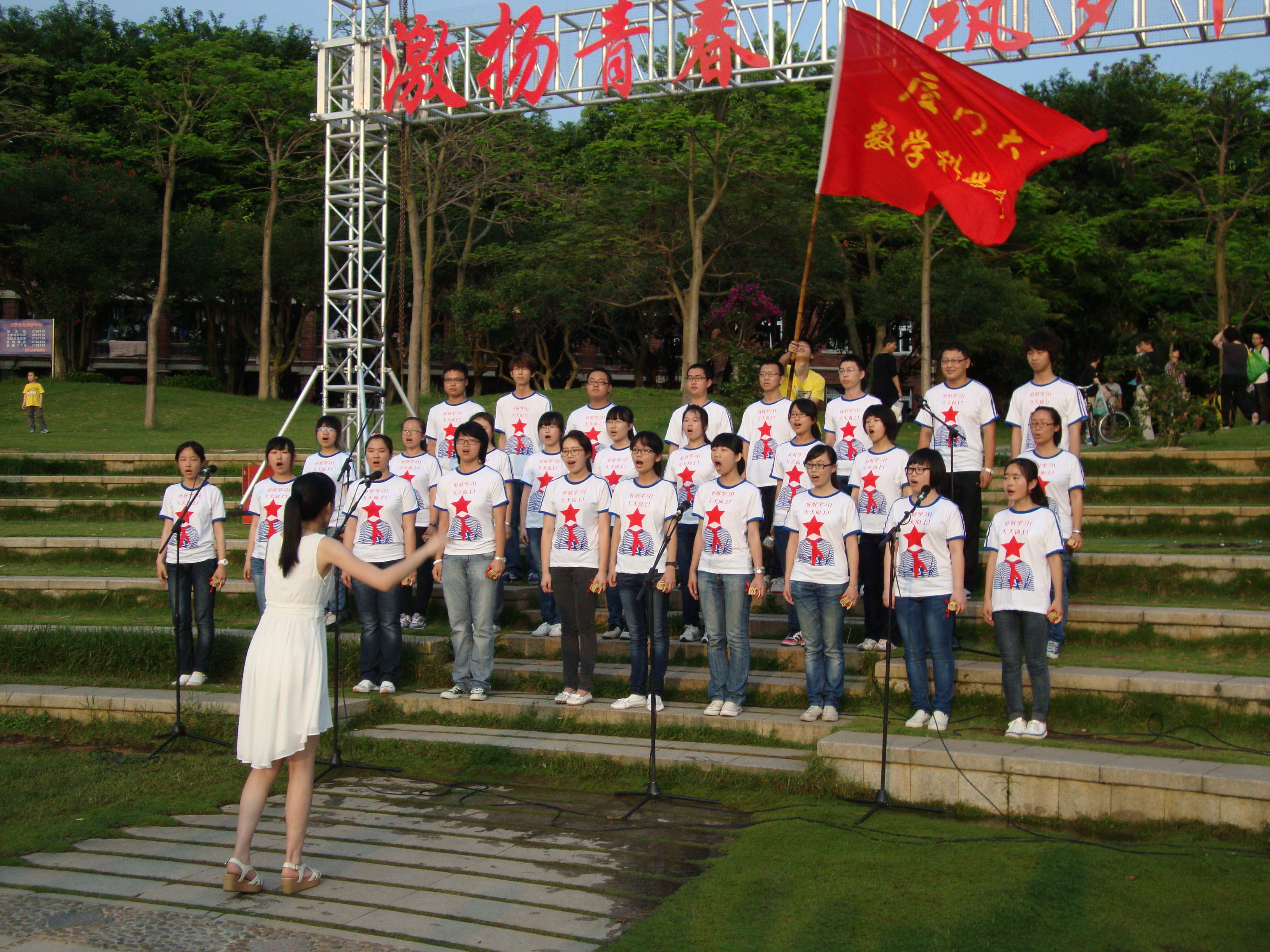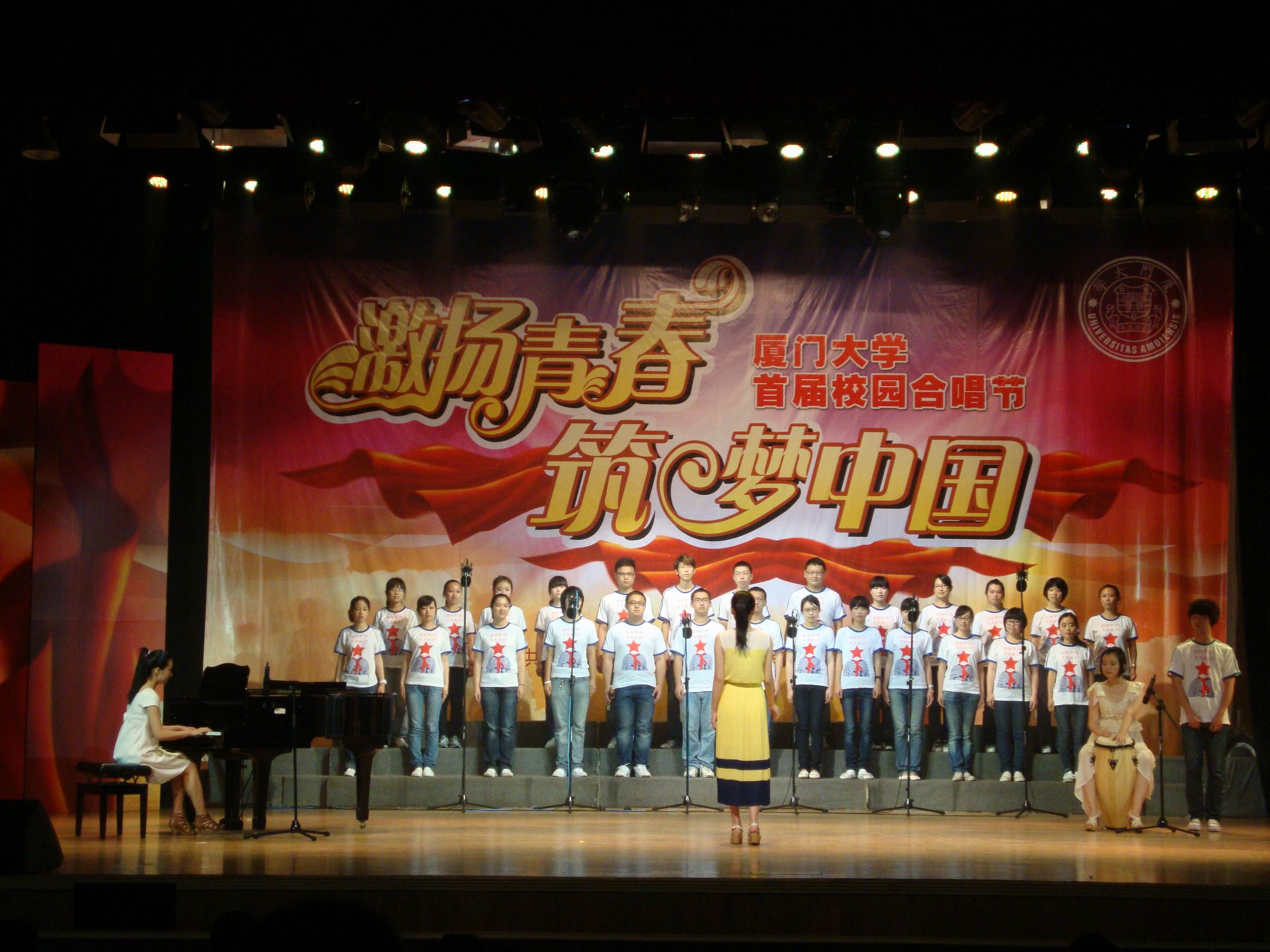 2013年5月17日晚5点30分,芙蓉湖畔圆形舞台之上,9001cc金沙合唱队正唱响着青春之歌,歌声响彻校园,感染着现场每个人的心灵。这是厦门大学首届校园合唱节的现场上进行的一幕。