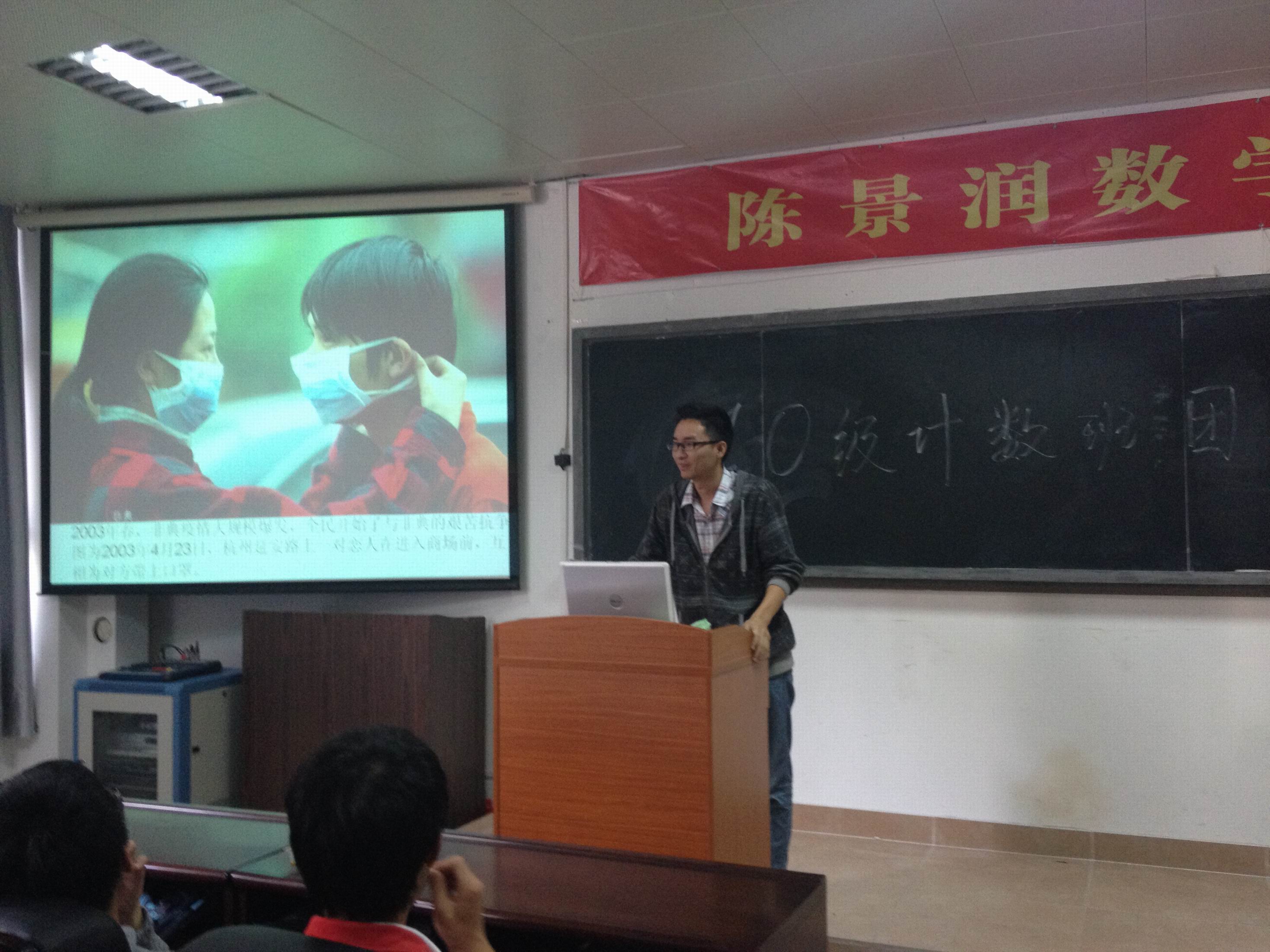 11月15日上午10:00,为学习党的十八大精神,提升支部凝聚力,增强班级团结,加深大学生对党和祖国的自豪感,9001cc金沙10级计数班团课在海韵实验楼105热烈开展。