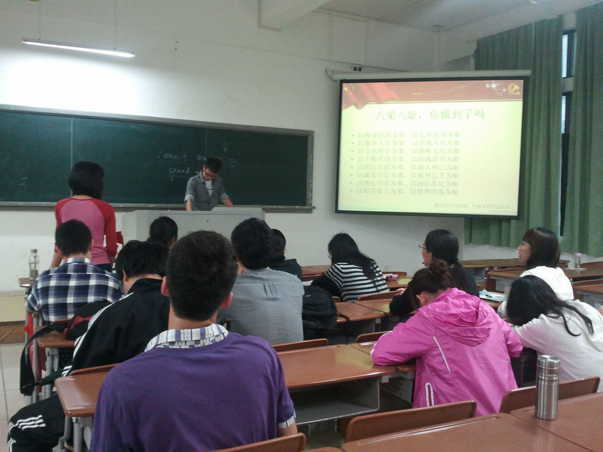 4月28日、29日,我院10、11级本科生党支部两个党章学习小组第二次学习活动分别在厦门大学漳州校区4号楼306教室和4号楼512教室成功开展。10、11级全体党员、预备党员和入党积极分子参加了此次学习,两次会议分别由党支部宣传委员尹思文、组织委员马婷主持,本次学习主题是:正确树立社会主义荣辱观、人生观、价值观。