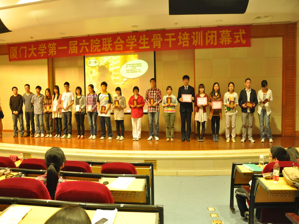 然后,进行了优秀学员颁奖仪式。我院张益豪、王颖宇、林晓雯、穆蓉获得了优秀学员称号。(图)