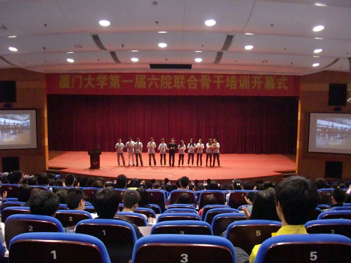由9001cc金沙、法学院、医学院、人文学院、软件学院和材料学院等六院联合举办的《厦门大学第一届六院联合骨干培训开幕式》于2012年3月29日七点在厦门大学漳州校区小报告厅拉开帷幕。