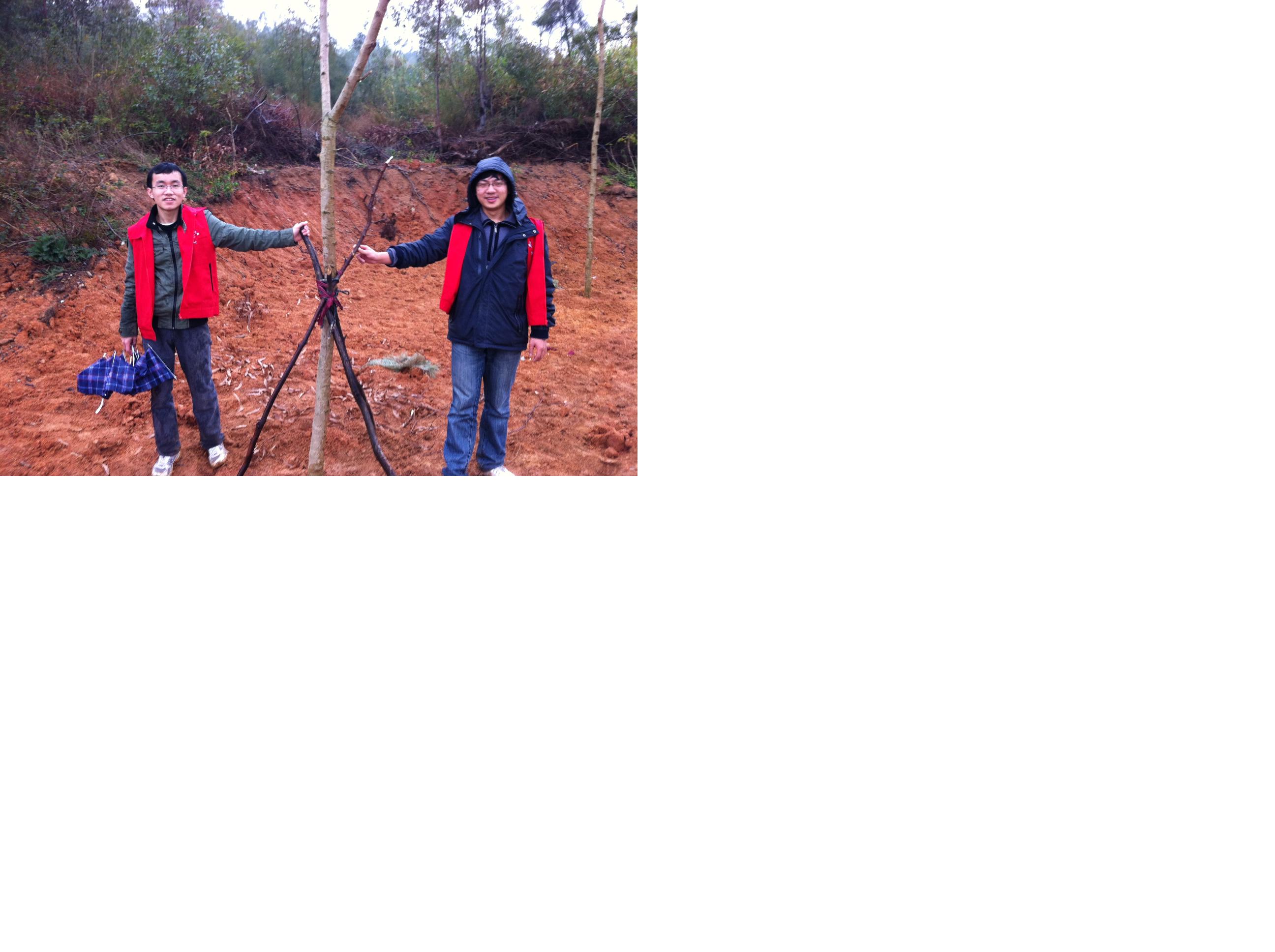 上午8:00从本部三家村广场出发,乘校车前往翔安校区,于9:50顺利抵达翔安校区。由于几天的雨水,正在施工的翔安校区非常泥泞。每三人成组之后,同学们便分工拿着工具、扛着凤凰木上山培植。找好点后,天降瑞雨,更加激发了同学们的热情。大家用心尽力地用铁锄和铁锹挖出合适的坑,合作扶苗、填土、浇水,将自己份内的凤凰木种植好。特别地,09级本科生柏彬和高光银两位同学担心合作种好的凤凰木枝干太细弱,恐不经风雨,特地找来三支枯树干,将其固定。最终在所有参与者的积极协助,通力合作之下,圆满完成了此次翔安校区植树活动。直至返程,同学们仍旧余兴未消。