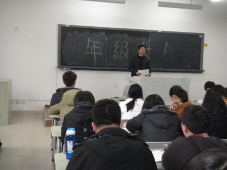 2012年2月16日16:15, 09级本科生新学期的第一次年级大会在海韵教学楼101教室召开,辅导员陈向柳老师和09级全体本科生与会。