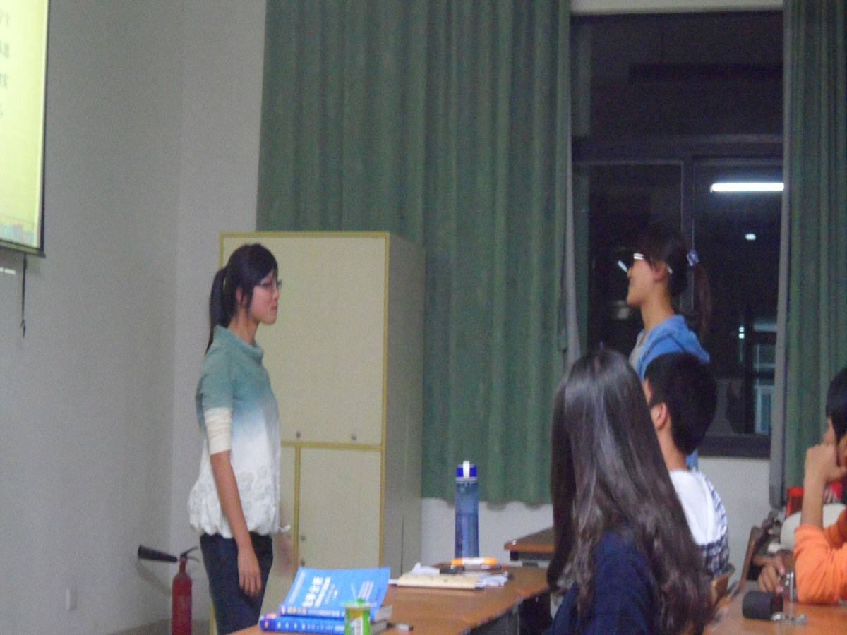 在同学们的热烈掌声中,一段号召大家积极参与团课的视频正式拉开了此次团课的序幕。首先基地班团支书程敏同学介绍了这次团课的主要内容,用轻松的方式充分调动了同学们的积极性。随后耿漓江、程敏、刘明媚、牛坤立、陈焱同学分别就“六度连接”的主题开展了“我”、“厦大”、“团与党”、“中国”、“世界”、“新的我”六个部分的活动。她们向同学们介绍了团章党章,和大家一起了解时事,拓展视野。此外,此次团课还创造性地通过用各地方言读党章团章等趣味活动让大家更加积极主动地参与到团课中,使大家熟悉党团知识,了解校史,了解中国文化,深入理解全球化等。最后,主题则又回到“新的我”——重新认识自我,积极争做有志向有梦想的好青年。
