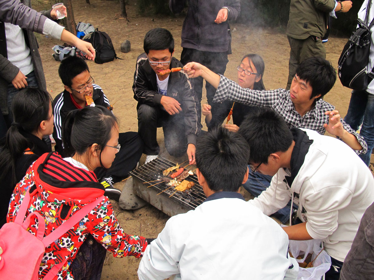 十一点半,众人期待已久的烧烤终于登上了舞台。通过自己生火、烤食物、炒菜、煮泡面,中间虽然也遇到一些小麻烦,但同学之间的互帮互助以及石辅导员的指导终于让每位同学都吃上了烧烤,但此时动手的乐趣已经远远超过了美味的食物对同学们的诱惑,让同学们感受到野外求生的不易。
