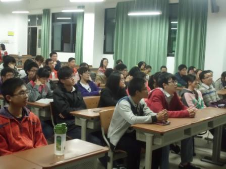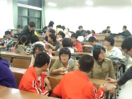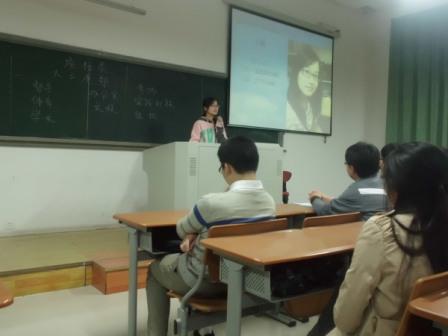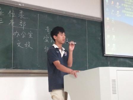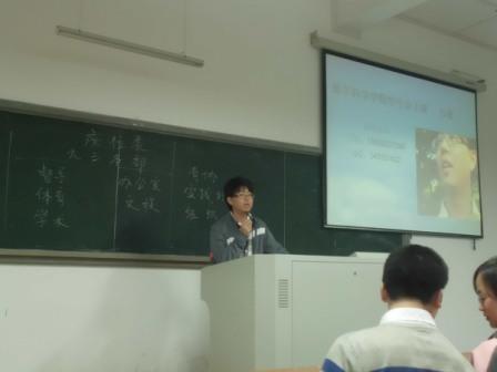 在简单的开场白后,09级学长学姐们依次上台通过PPT展示,向大家介绍了生活中的自己,并与同学们分享了自己学生工作的经验与收获。一幅幅或亲切或搞笑的照片,一个个生动幽默的故事,在不知不觉中拉近了在场每个人的感情。随后,辅导员石义凯老师向同学们提出了几点意见并表达了对数学科学学生会工作的认可与鼓励。