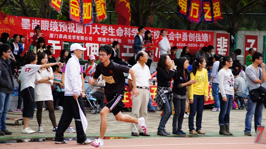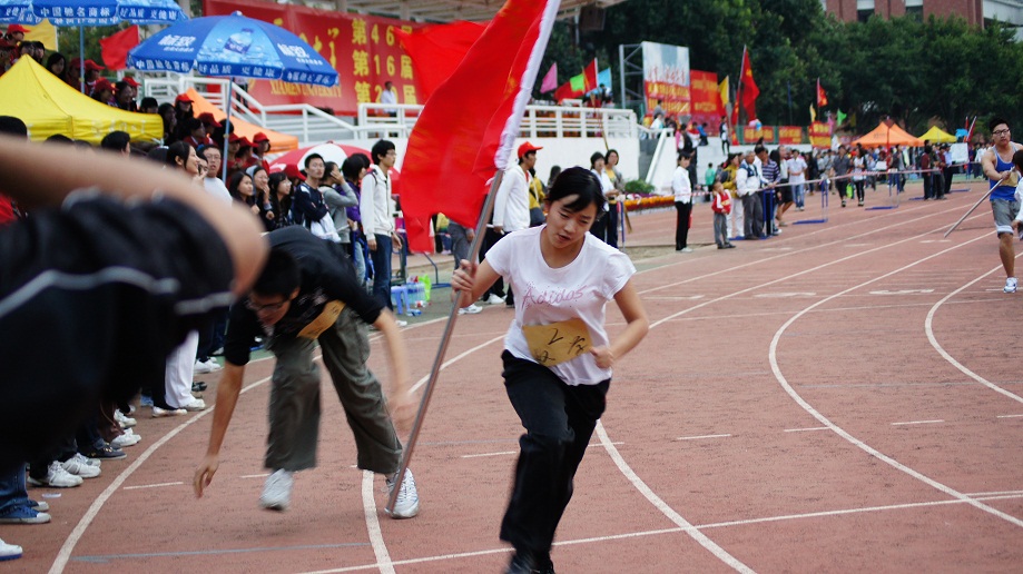 6人*400米扛院旗接力,由09级诸颖远、叶芸、余挺、彭水燃、郑祎楠、刘玉婷组成的数院代表队排在第13名。