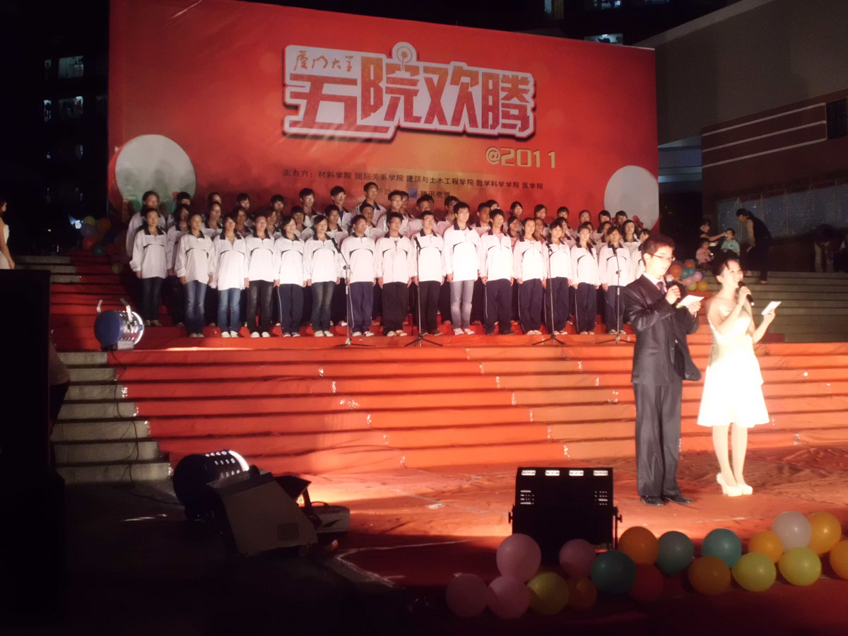10月30日晚5:30,由腾讯微博赞助的 “五院欢腾@2011”迎新晚会在厦门大学漳州校区北区步行广场隆重开演。