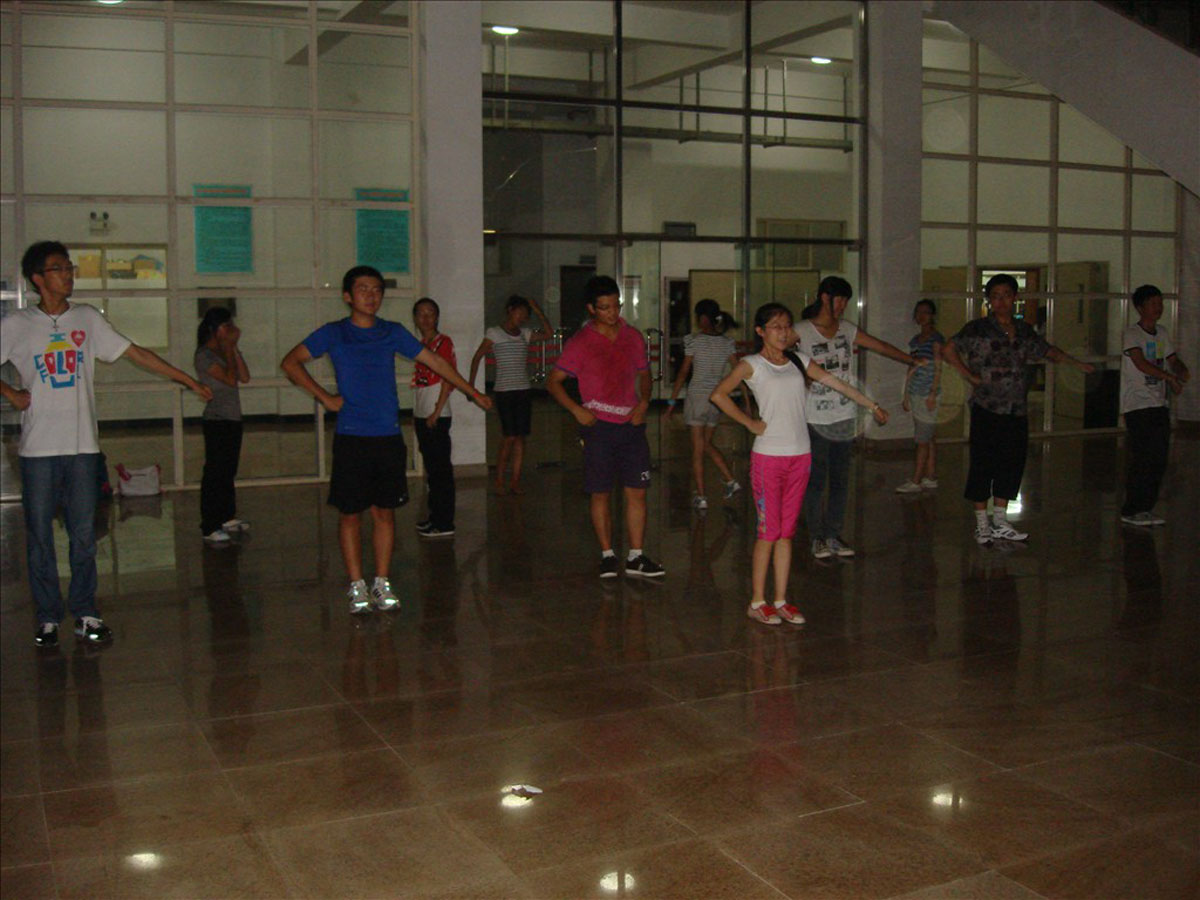 10月11日晚八点三十分,在厦门大学漳州校区风雨球馆,9001cc金沙2011级的同学们在10级郑鹊、唐蕾、段巧的指导下进行了第三次啦啦操训练。