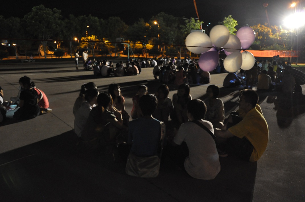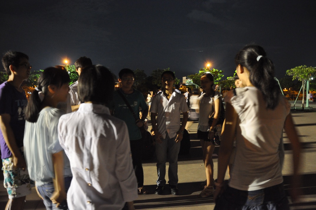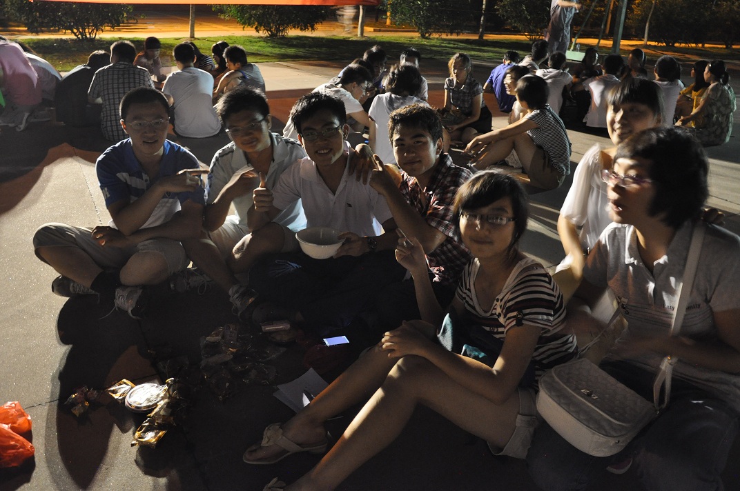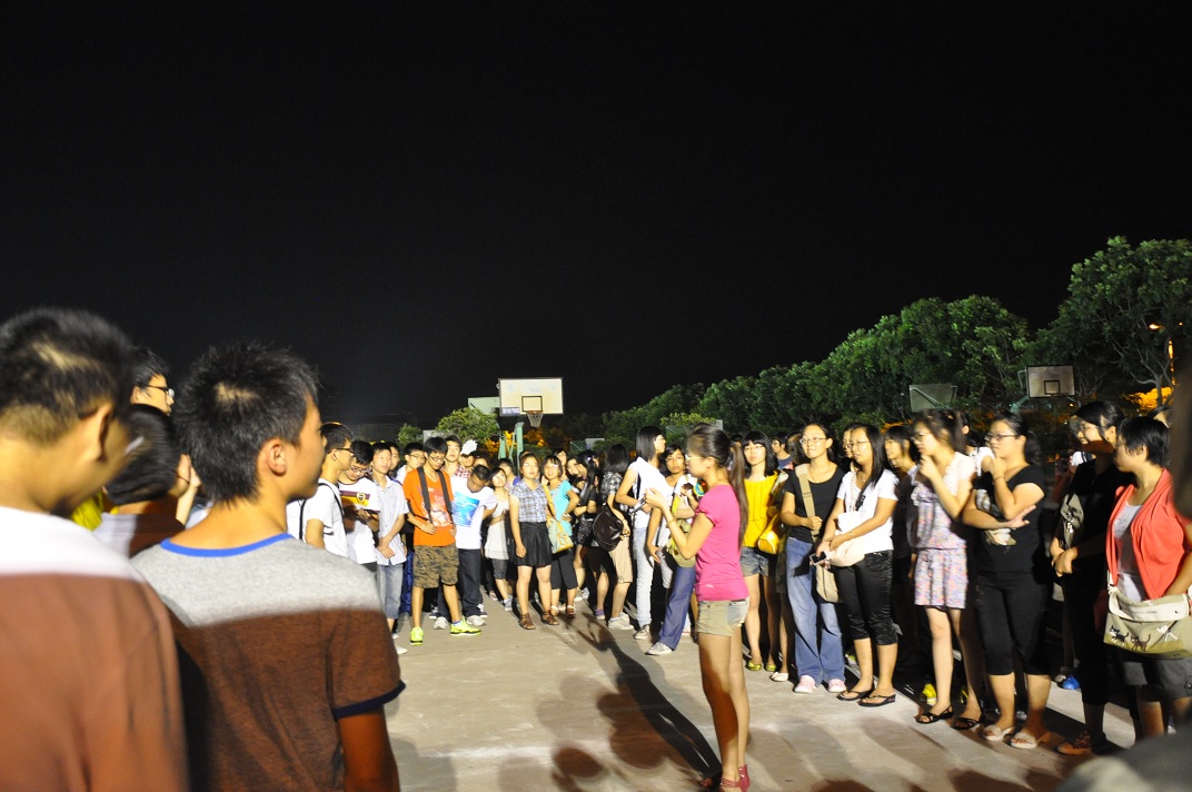 活动定于中秋节晚上的七点半在风雨球馆附近的篮球场举办。在一闪一跃的灯光下,11级新生们整齐地排列开来。完全理解博饼规则后就按照男女寝混合分组再搭配一名学长学姐开始投入到游戏中去。尽管没有耀眼夺目的灯光,也没有华丽的舞台。但是,每个参与其中的同学都从中得到了快乐,也获得了来自大学的第一份友谊。最后同学们个个笑容满面,满载而归。