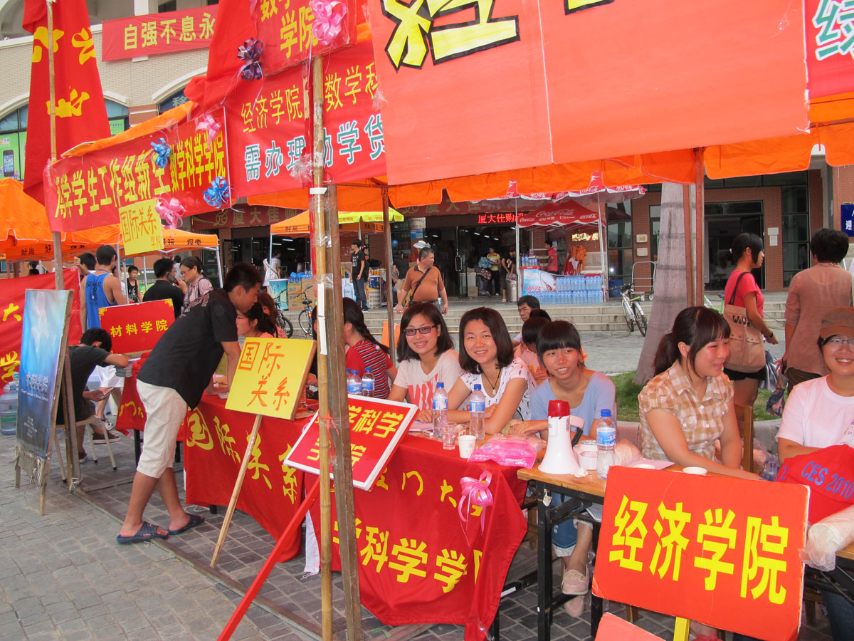 与此同时,10级各个迎新点的志愿者们也激情高涨、有条不紊的继续着他们的工作,努力让每一位来报道的新生和家长从踏入厦大校园就忘掉旅途的疲惫,深深感受到数院的温馨与活力。