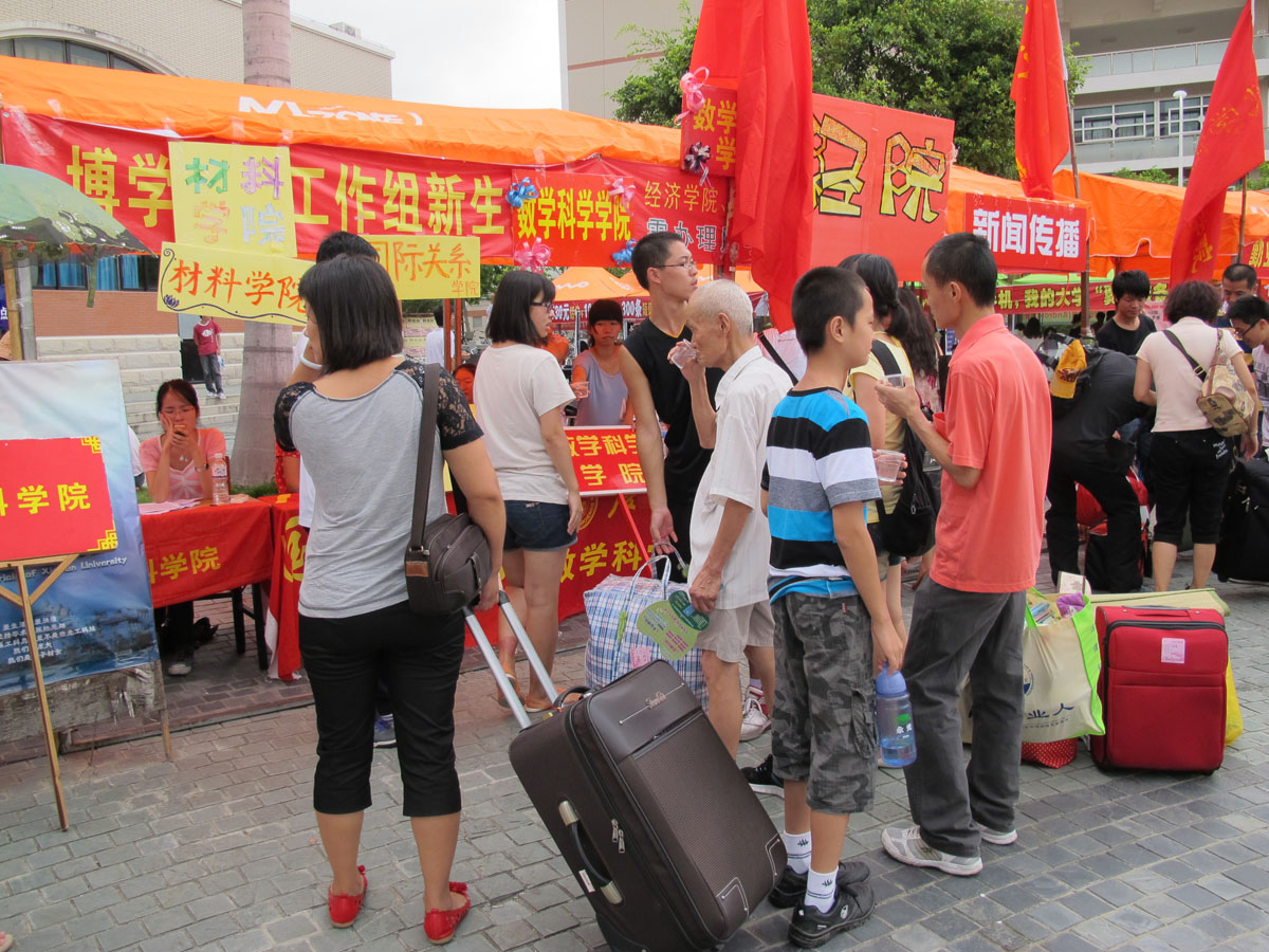 虽然刚刚告别了陪同的父母,但是从昨天开始,乌险峰、钟齐先、叶晋飞、郭重言等11级新同学就已经在学长学姐们热情的感召下,加入到了热烈的迎新活动中,烈日下,他们跟随着学长学姐坚守在迎新的岗位上,积极帮助新来报道的同学搬运行李,并且热情的为新同学及新生家长介绍一些校园生活常识和新生注意事项,认真敬业的他们用自己的实际行动将学长学姐对他们的关爱传递给了更多的同学,赢得了大家的一致认可,充分体现了9001cc金沙和谐、积极向上的精神风貌,同时也让我们对11级的同学们充满了更高的期待,我们也真心祝愿每一名新同学都有一段美好的大学生活。