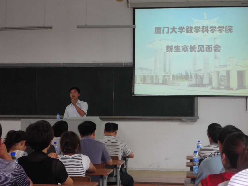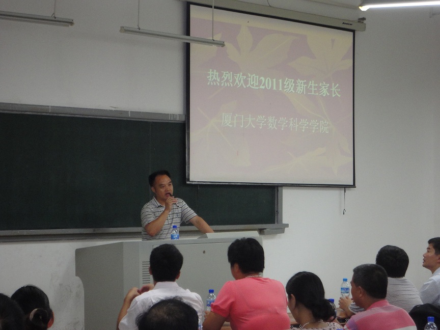 9月10日下午16:00,2011级新生家长见面会在4号楼112教室举行。学院党委张明智书记、郑诚明副书记、副院长邱春晖教授、数学与应用数学系主任钱建国教授、学院团委黄兆君书记、辅导员陈向柳与石义凯参加了会议。见面会由党委副书记郑诚明主持。