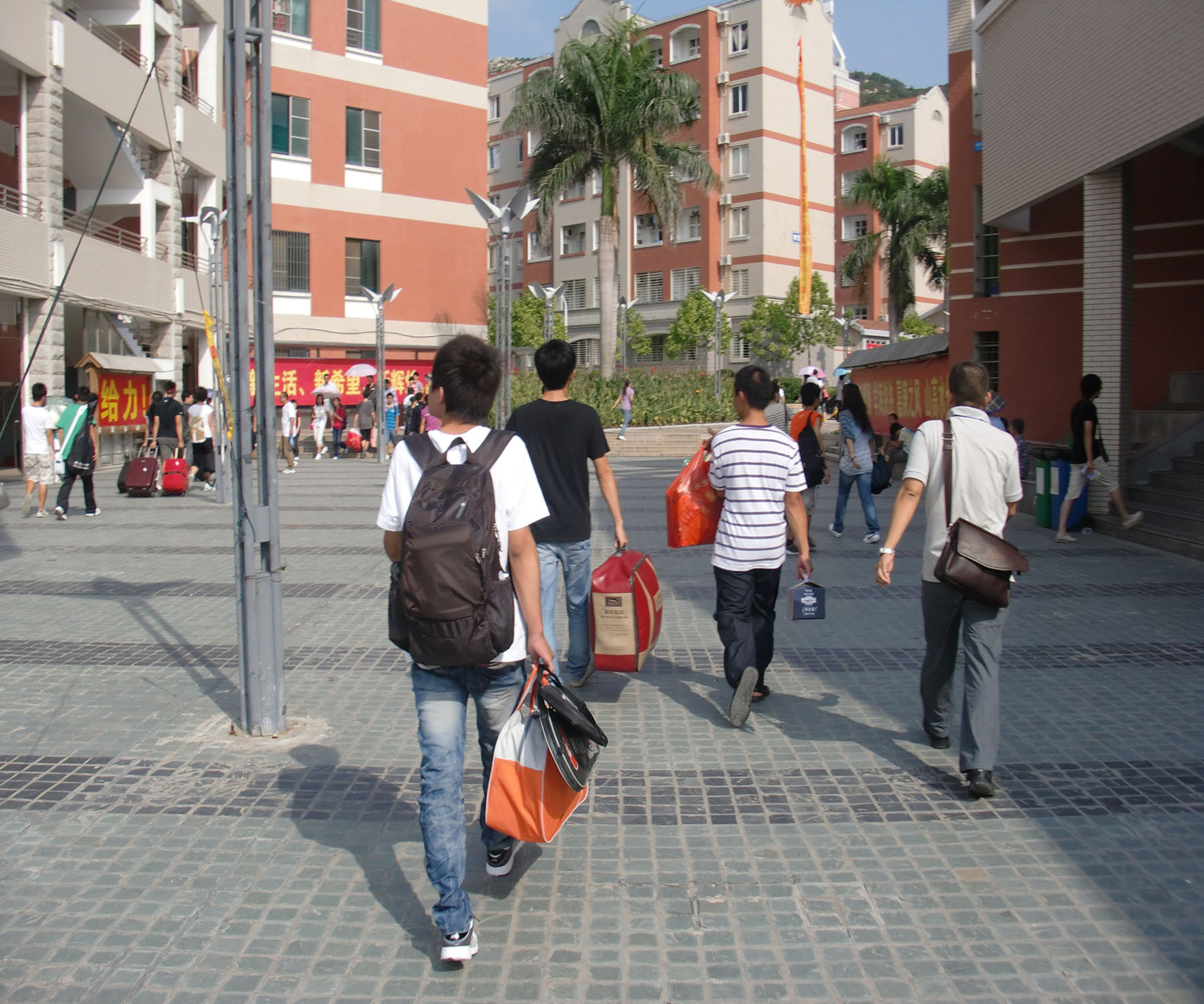 博学和芙蓉行李组的志愿者们此时挥汗如雨。他们接过新生的行囊,带领他们走进新家,与此同时传达一些大学生活的经验心得,让他们能够尽快适应新的环境。
