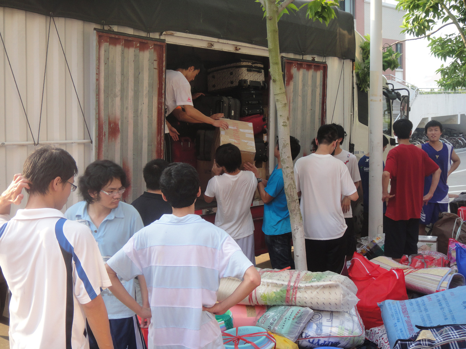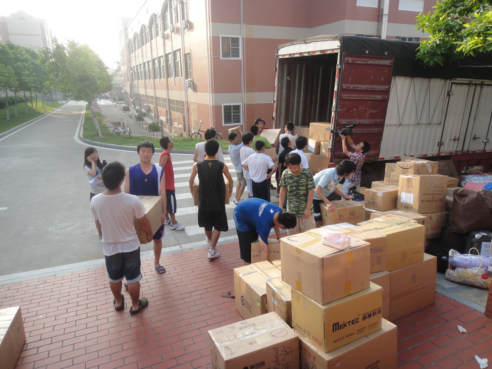 截至上午7:30,芙蓉与博学两园区的装车工作全部结束。随后,09级同学们跟随学校专门的车船来到海韵校区,并在08级学长学姐的帮助下将行李全部搬到了新的宿舍。接近中午时,入住工作也全部结束。