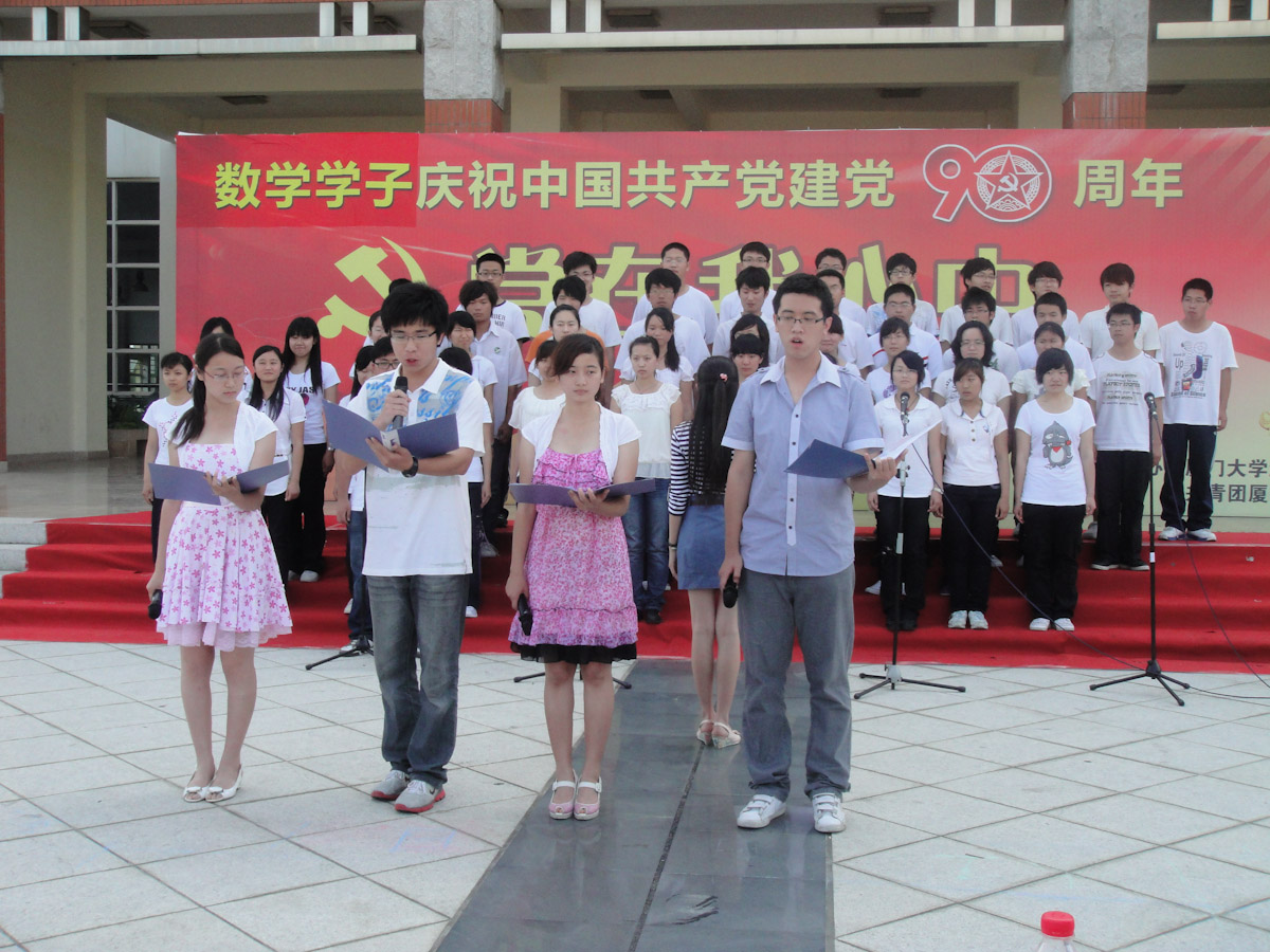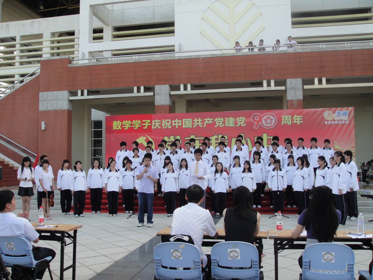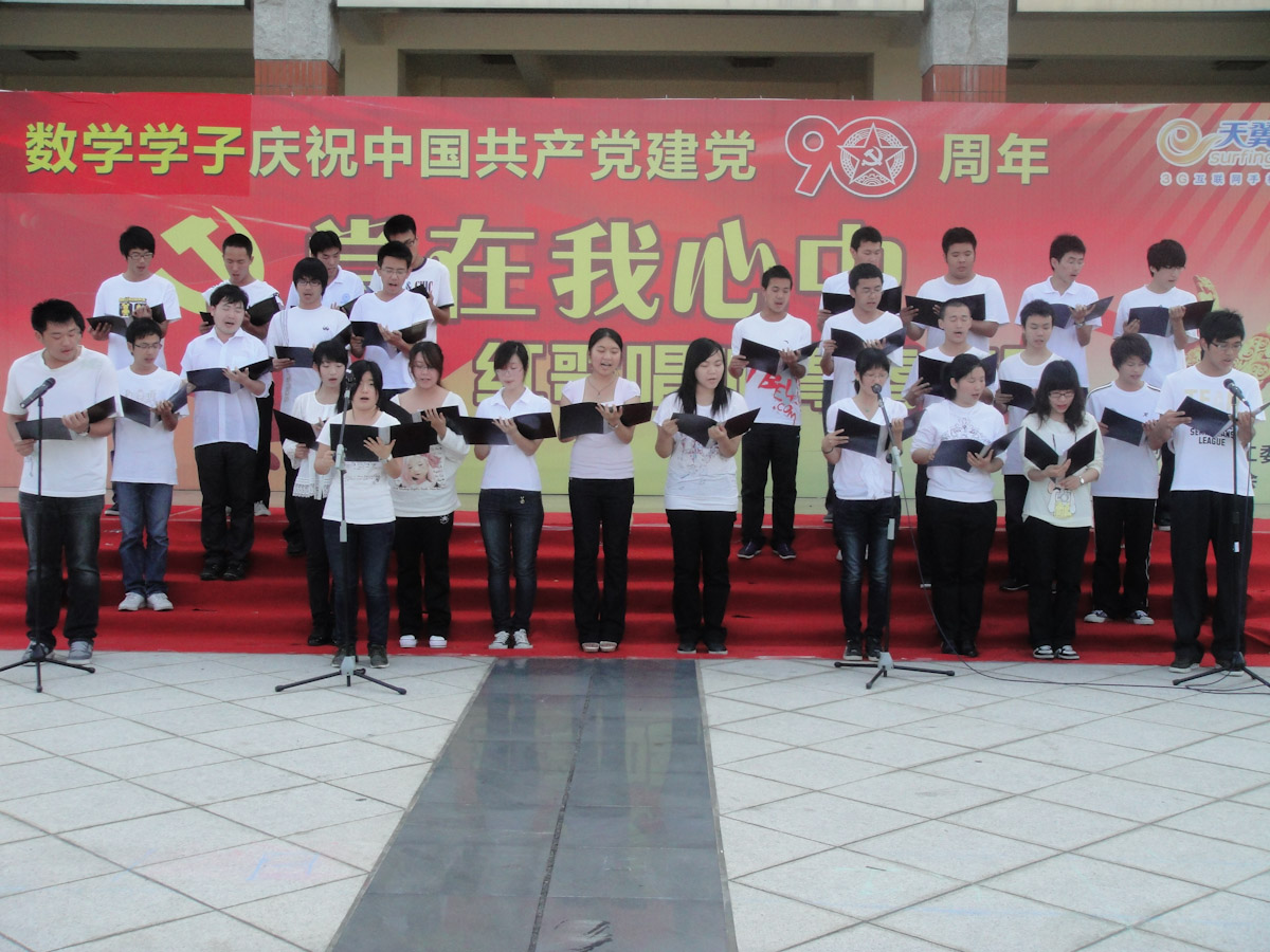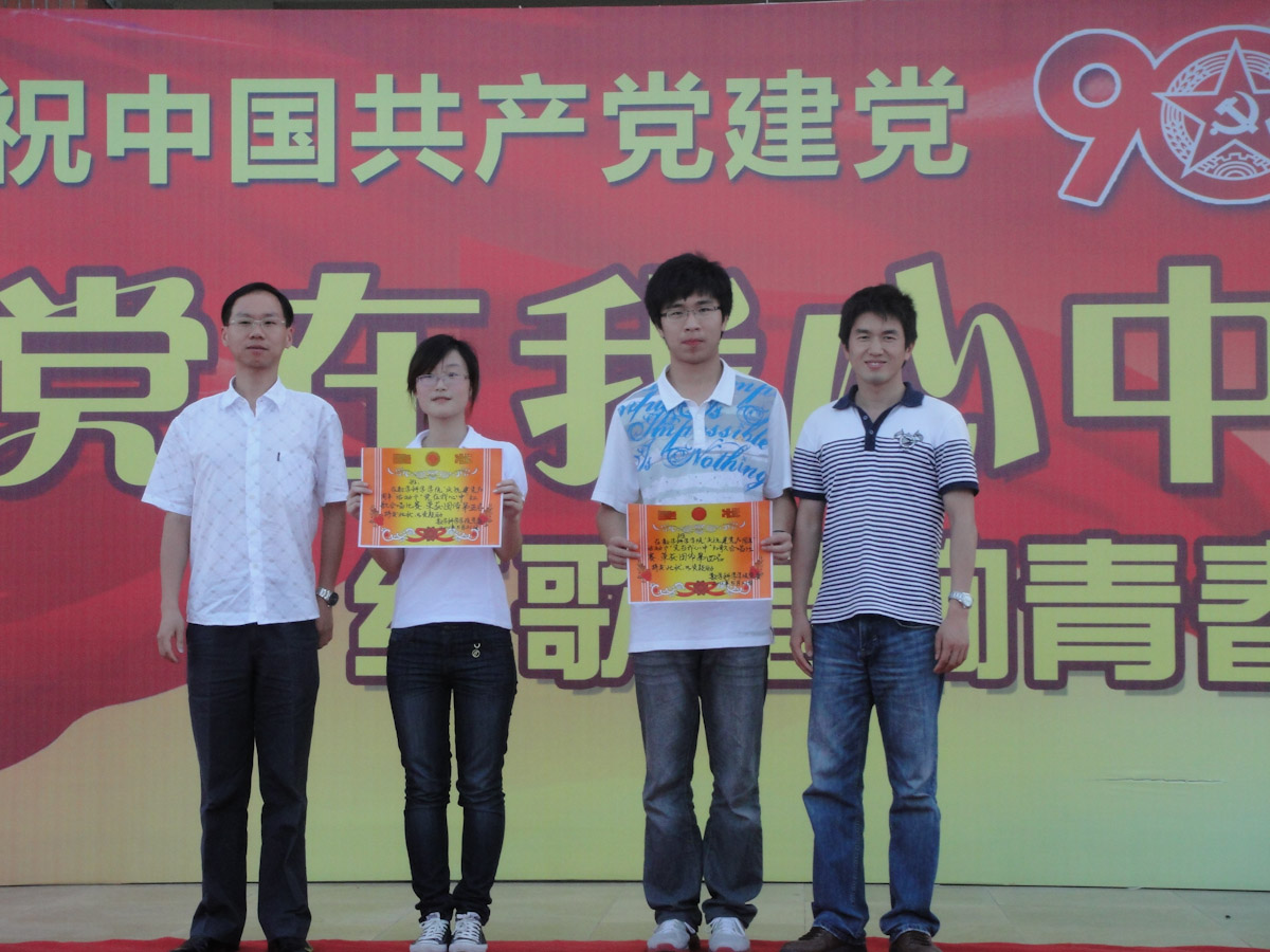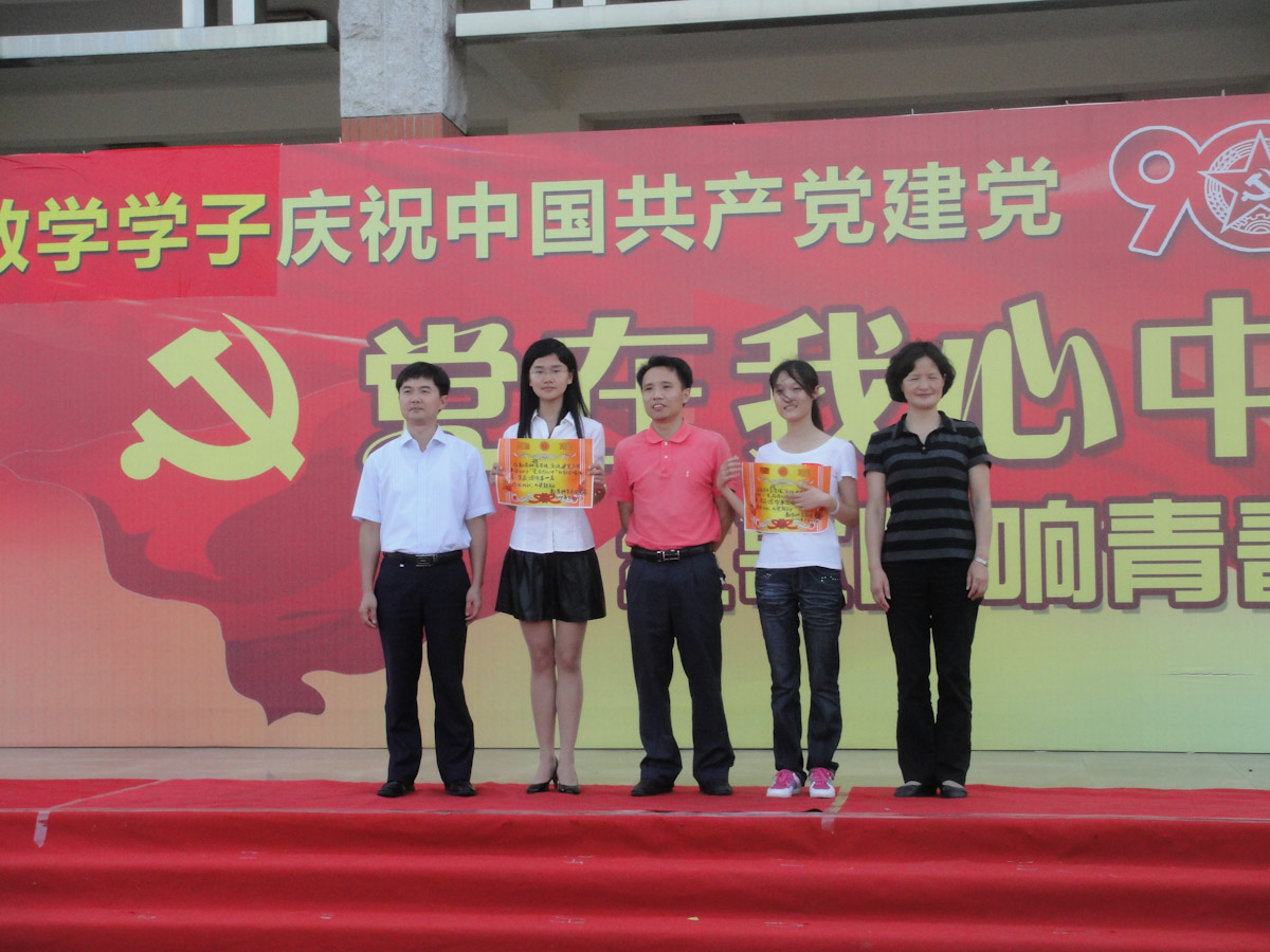 5月21日15时30分,9001cc金沙在风雨球馆东侧举行了庆祝“建党90周年”学生活动——“党在我心中”红歌合唱比赛。本次比赛共有一二年级的5个班级参赛,学院党委书记张明智,团委副书记杨机像,与09、10级各班班主任宣飞红、黄雪莹、曹娟、黄宏伟、李安作为评委出席了本次比赛。