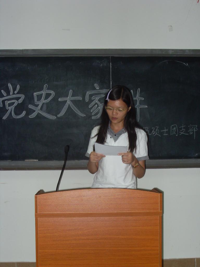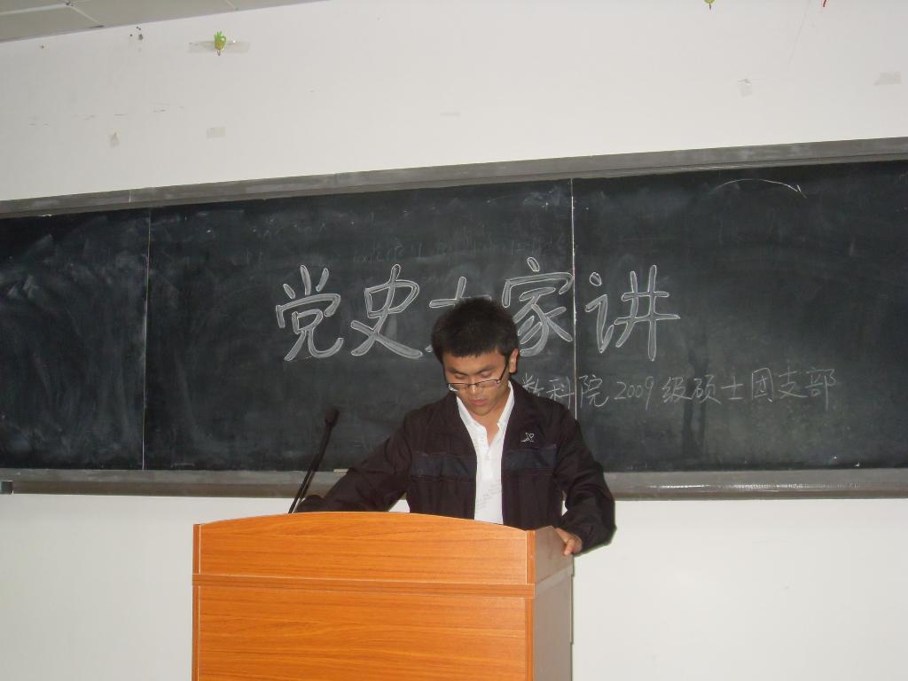 5月13日晚7点,数科院09级研究生在海韵园实验楼105教室进行“党史大家讲”的主题活动,整个活动持续两个小时,活动主要内容是交流学习党史的相关知识,增加提高对党的认识。