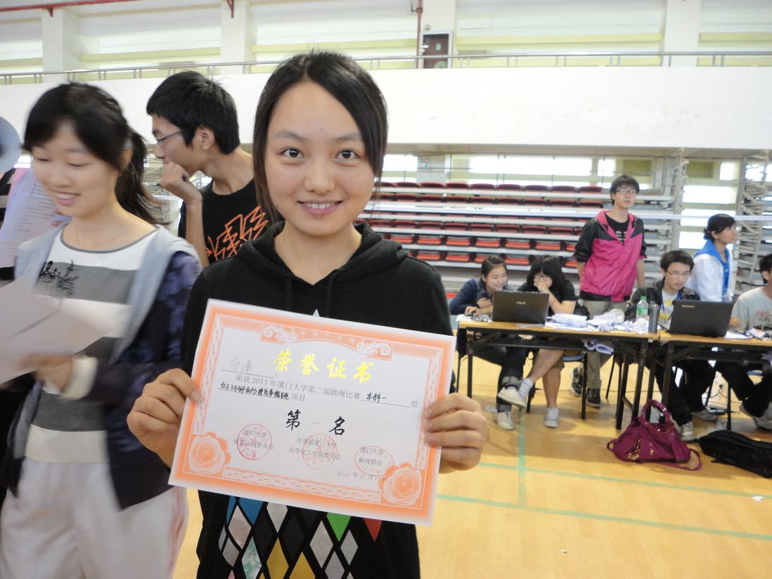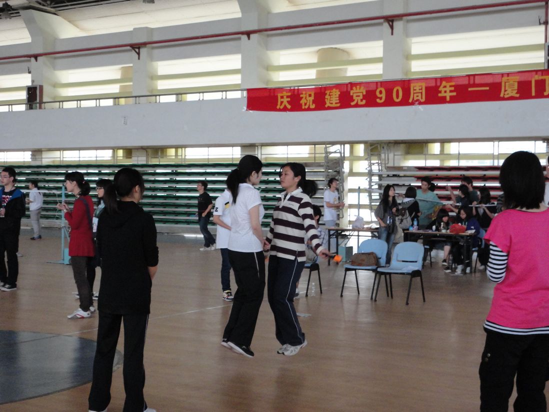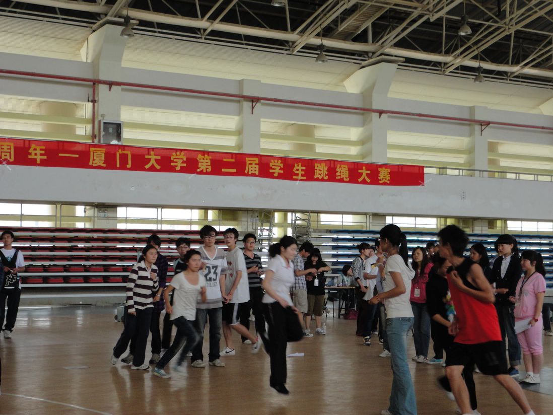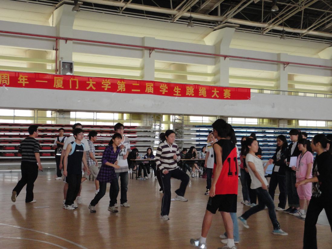 为庆祝建校90周年,厦门大学第二届学生跳绳大赛(漳州校区)于2011年4月23日于漳州校区风雨球馆正式开始。我院09级邵航、刘斯宇、于洋、朱李岑、唐潇、徐丝雨、何欣莹、10级郑鹊、孙萌颖、徐佳胤代表学院参加了比赛。