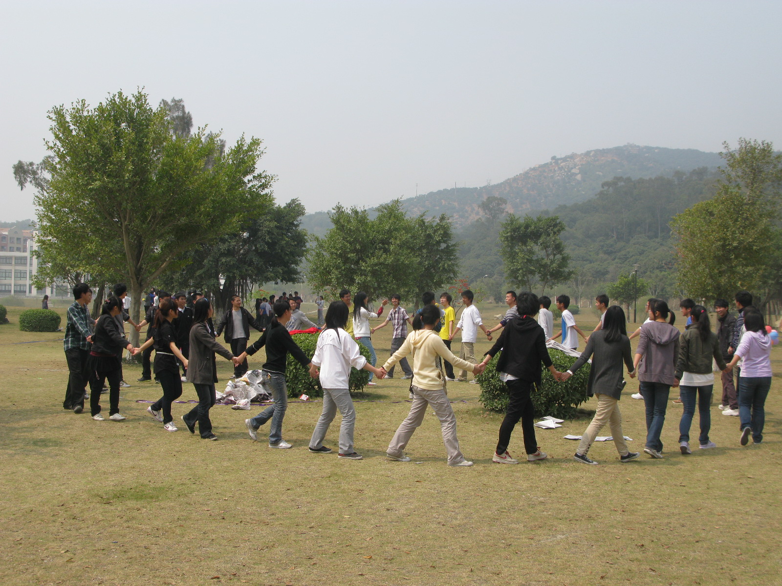 以母校90周年华诞为契机,为了培养团员青年的爱党爱国、爱校荣校的责任感,进一步加强班级团支部建设,促进班级和谐交流,并丰富同学校园文化生活、拓展交际圈、提升综合素质,4月10日 上午9:30,10级非基地班在漳州校区体育场边草坪展开团日素质拓展活动。