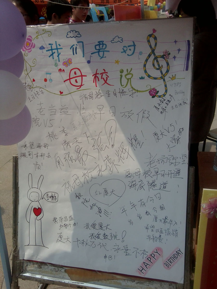 借助本次活动的呼吁及倡议,相信厦大学子将以崭新的面貌为我校九十周年校庆谱一曲生日礼赞。