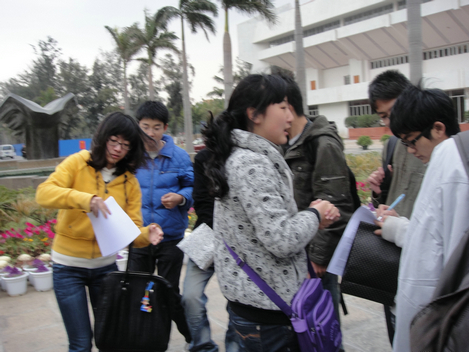 3月7日下午4点整,08级应数2班的男生们早早地在西村门口集合,把用心为女生准备的小礼物藏到美丽的厦大校园里。随后,女生们到场,拿上男生们实现备好的地图,按照地图背面提供的线索,在规定的时间内在校园的各个角落里寻找属于自己的惊喜。整个游戏简单易行,却带着无尽的紧张和期待。最终,女生们都或顺利或坎坷地找到了自己的专属女生节礼物。
