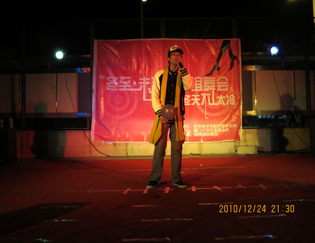 2010年12月24日晚7点,厦门大学漳州校区排球场上,由9001cc金沙团委学生会主办,厦门大学交谊舞协会协办的“冬至·未至”联谊舞会隆重开幕。在这个充满奇炫灯光与青春激情的夜晚,9001cc金沙团委副书记杨机像老师、厦门大学学生会漳州校区分会主席刘洋也来到了现场,与9001cc金沙及其他院系学生会的同学们共同度过这个没有雪的冬至,共同迎接即将来临的新年。