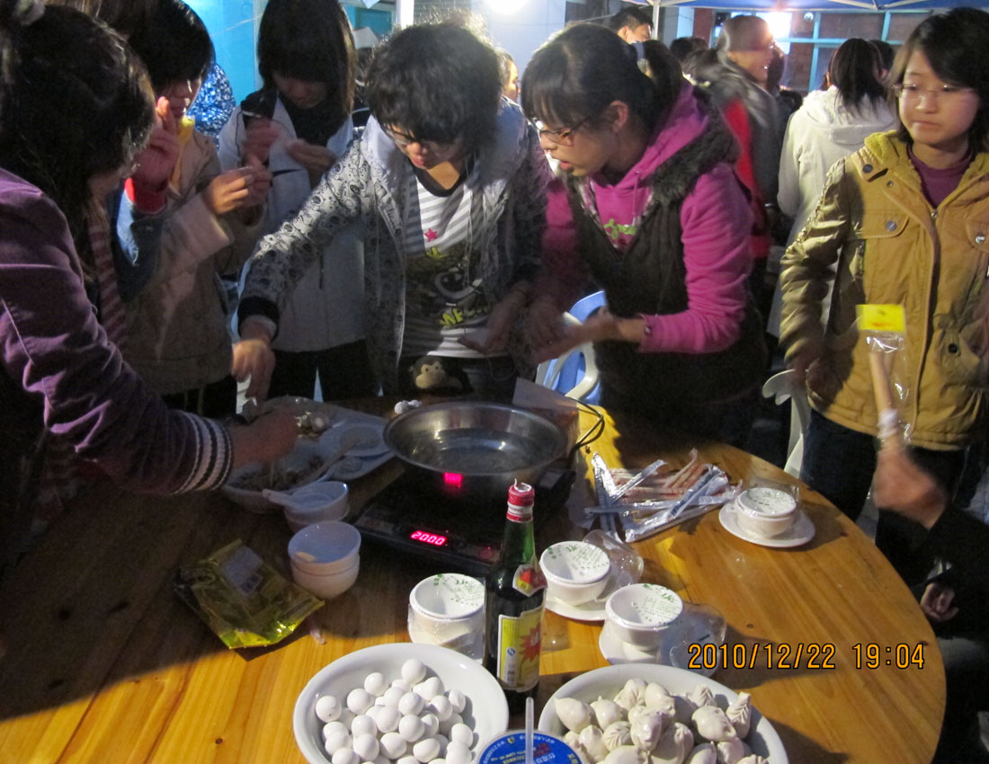 12月22日晚6:30,9001cc金沙同学们齐聚校外沸点餐厅共迎冬至。身在他乡、无法与家人共度佳节的同学们,在学院组织下一同包饺子、吃汤圆,体验了不一样的温情,感受到了浓浓的亲情友情。