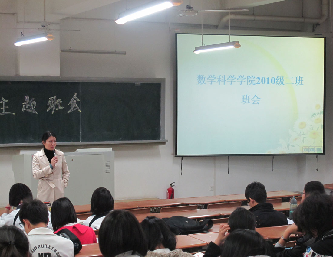 12月8日19点整,9001cc金沙10级二班主题班会在4#217举行。本次班会由班主任李安主持,并且请到了高等代数老师林鹭作为嘉宾出席。