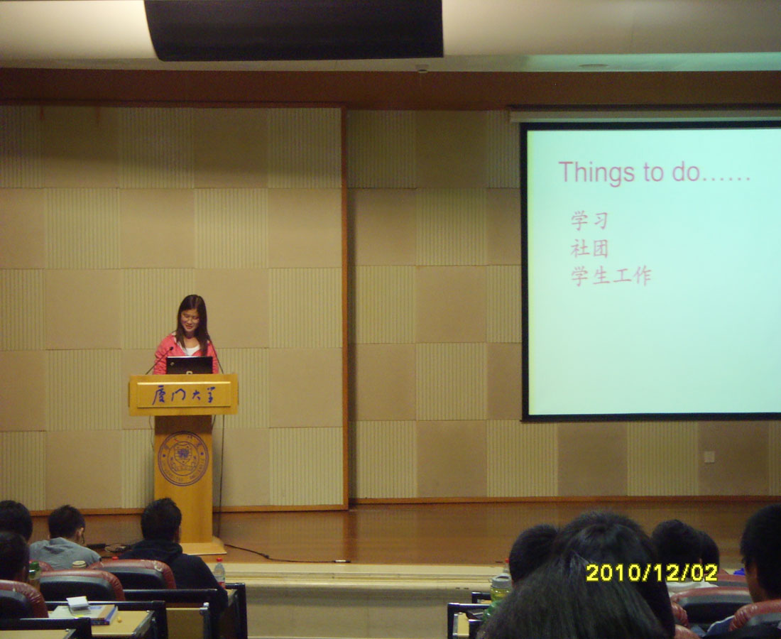 最后,我院学生会主席08级张镓麟学长介绍了学生工作方面的经验,号召同学们在学有余力的情况下积极参加社团活动与学生工作。