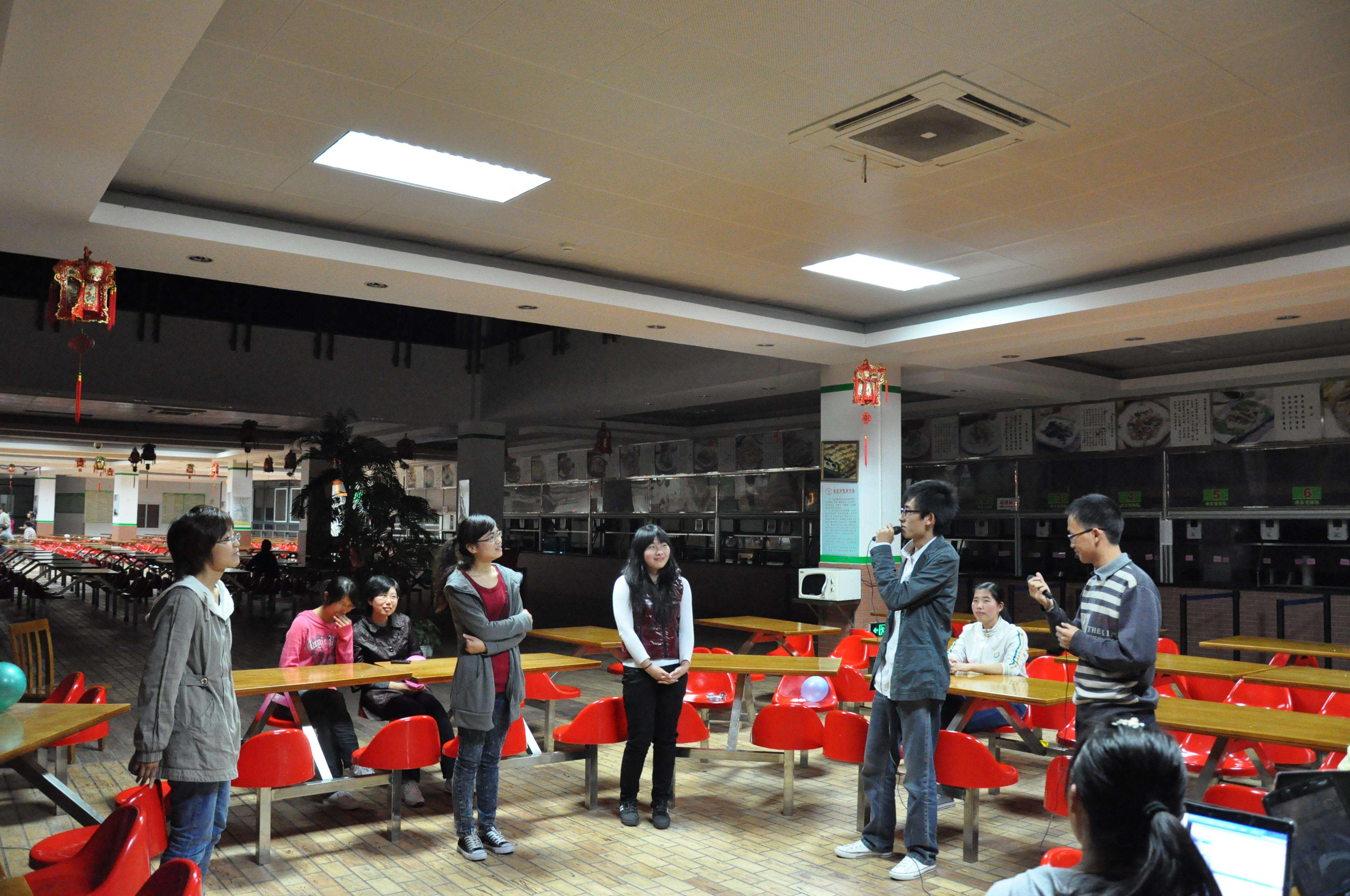 一年一度的光棍节又如约而至,为了让同学们在这一天里觉得孤独,数科院研究生会为大家举办一个山寨版的非诚勿扰。11月11日晚上7:30 ,“非诚勿扰”在同学们的期待中开始,王友智饰孟非当主持人,苏兴泉饰男评论员乐嘉,陈艺宣当女评论员。男嘉宾有江政雲、张瑶函、陈波等六位同学,女嘉宾有程潘红、徐凡惠、涂淑珍等同学。
