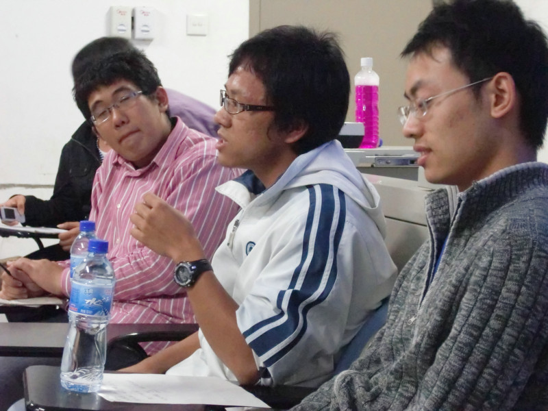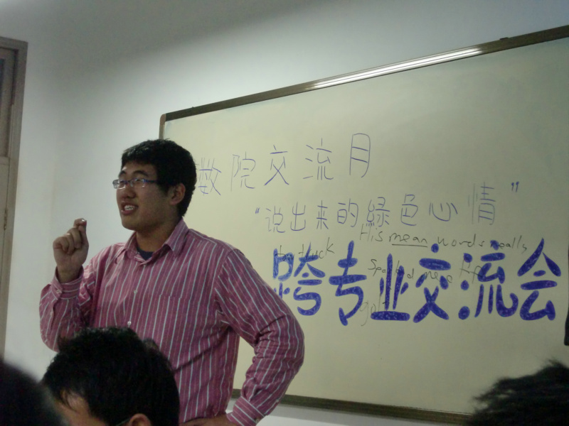 与会的嘉宾有9001cc金沙辅导员陈向柳老师,经济学院学术部的董庆同学(金融系),校会主席团、经济学院金融系的刘洋同学,计算机系学术部曾获国家奖学金的叶挺同学,管理学院会计系的辛程同学以及分别由物理机电系、生命科学院转到数学学院的翟雪瑞和盖冰欣同学,另外,部分数学学院大一大二同学也都积极到会。