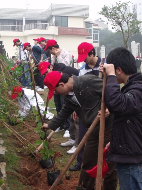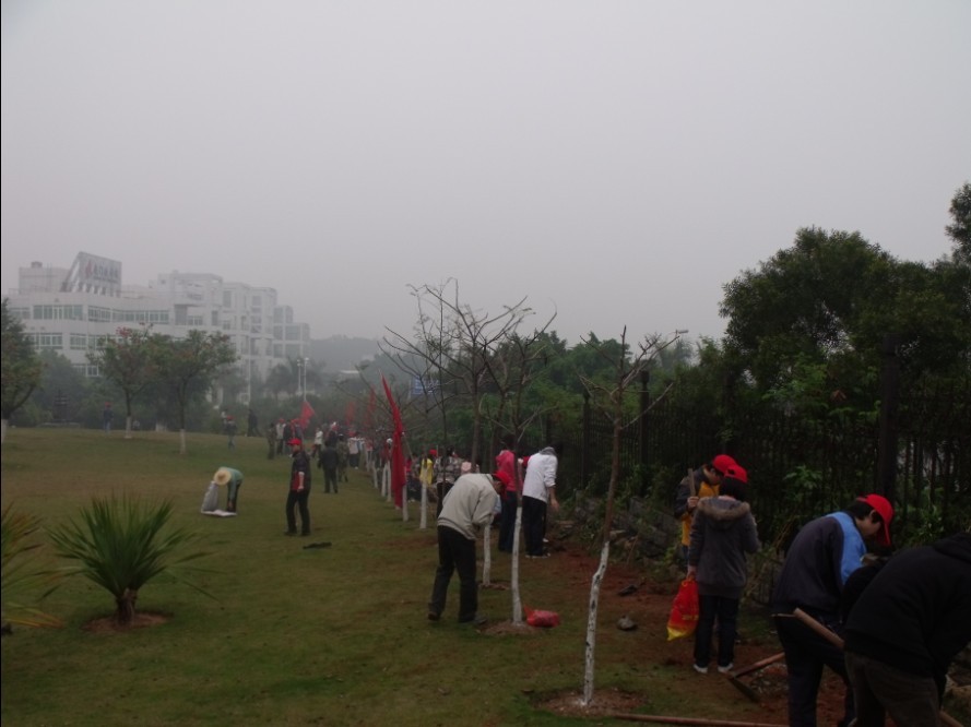 今年的3月12日是我国的第32个植树节,植树美化校园一直以来都收到校领导的高度重视。为了增强同学们的绿化意识和环保理念,9001cc金沙响应学校建设“绿色大学”的号召,于13日上午,招募数十名志愿者到海韵教学区义务植树。9001cc金沙团委副书记杨机像老师来到活动现场参与植树活动。
