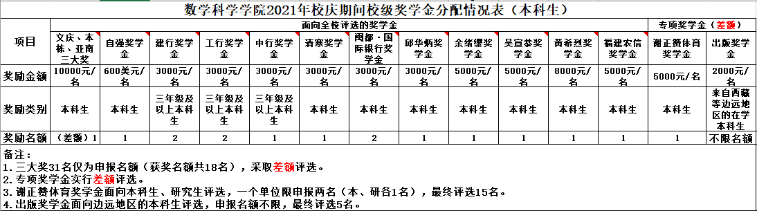 2)获得本次校级奖学金的本科生不能参评2021年下半年校级奖学金和2021年本科生优秀学生奖学金,但是可以参评2021年国家奖学金和国家励志奖学金。
